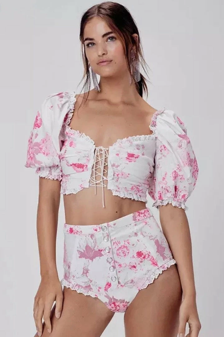 Achieve the most feminine look in the ‘Dalary’ top! Featuring a cropped length, puff short sleeve, and lace up front. Pair with light wash denim and heels for the perfect date-night look.
