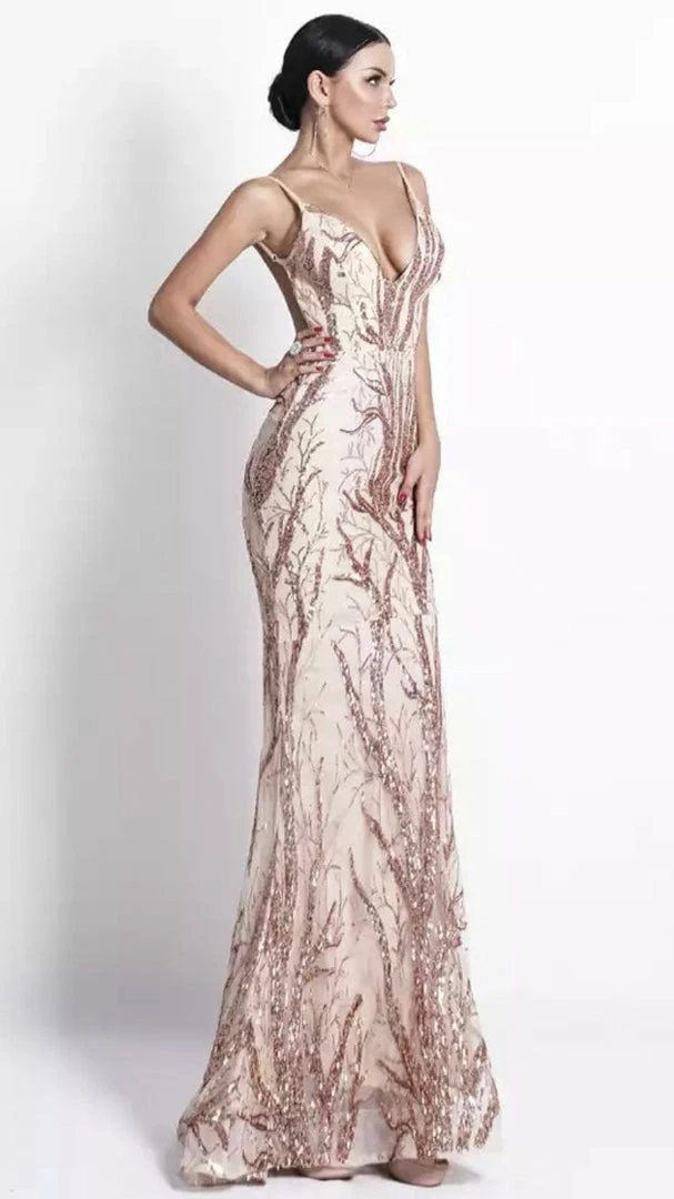 Have all eyes on you in this stunning gown. Featuring a backless style, maxi length, v-neck detail, sequins all over, we are obsessed. Pair with sky-high heels and statement earrings.