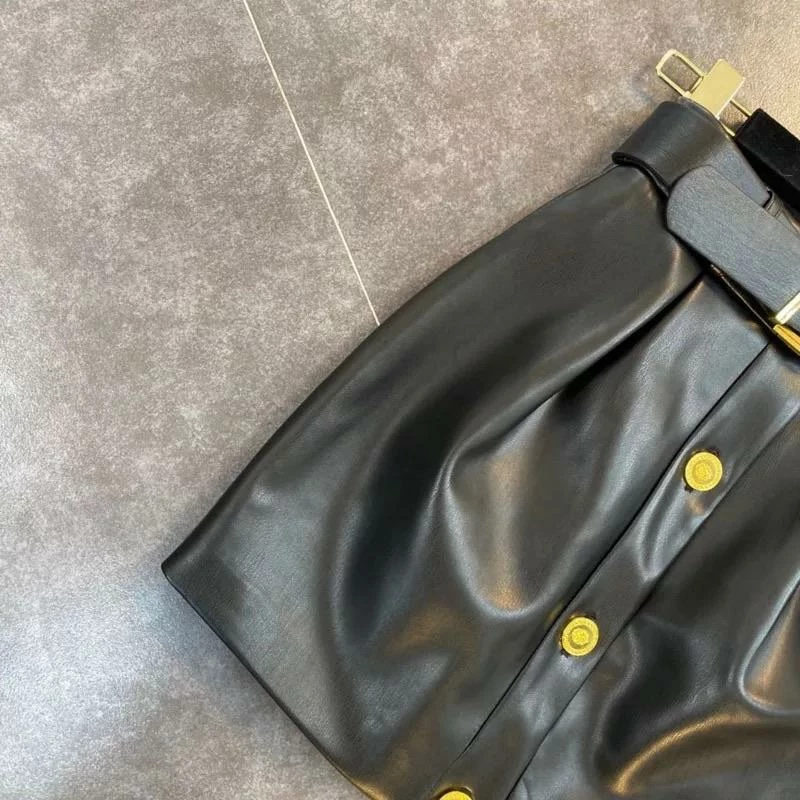 Our ‘Diara’ is a must have essential. It features patent leather material, a gold buckle, and gold buttons down the form. Pair this with a black turtle neck, tights, and gold jewelry for a quickly chic look!