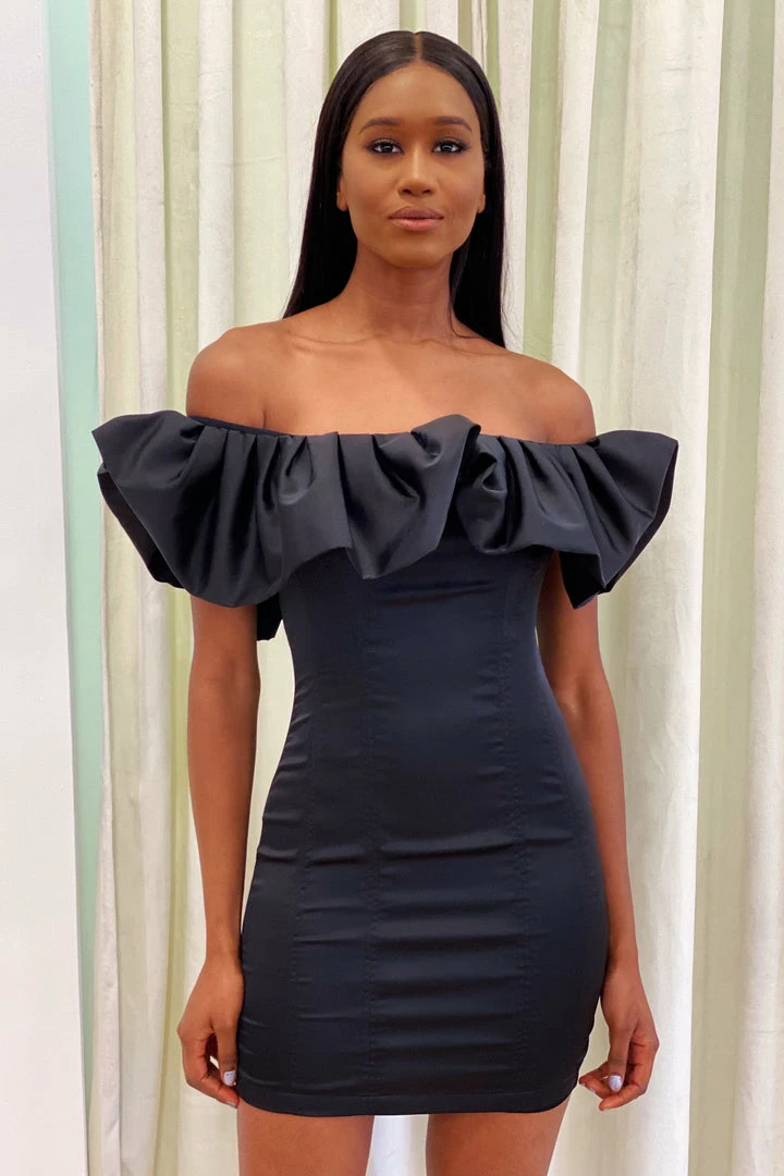 Spend all of your time searching for the right kind of dress? Look no further! Designed to cater to all occasions, our ‘Dina’ dress was made to fit you perfectly. With off the shoulder detail, puff sleeves, a bodycon fit, and mini length.