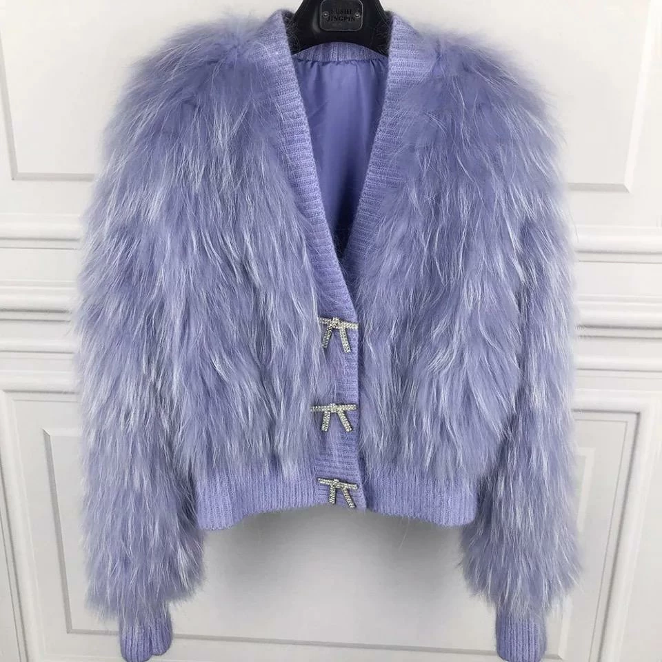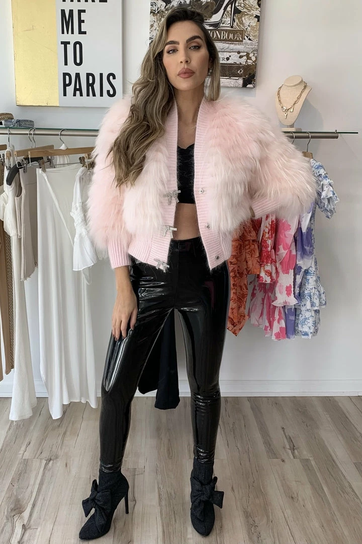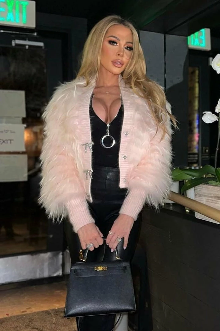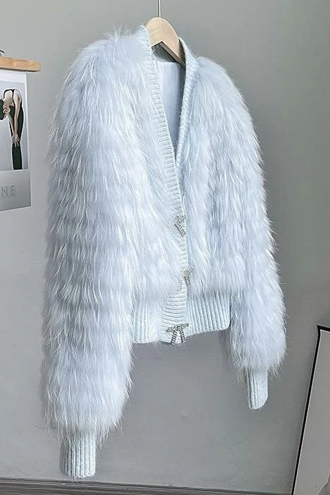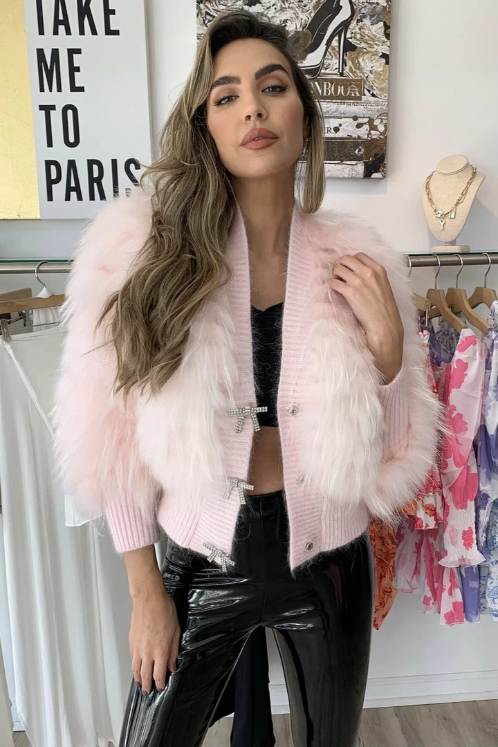 Step out in style during the chilly season with this adorable long sleeve, fur jacket with crystal bowtie buttons. Pair this over any outfit to become instantly cute.