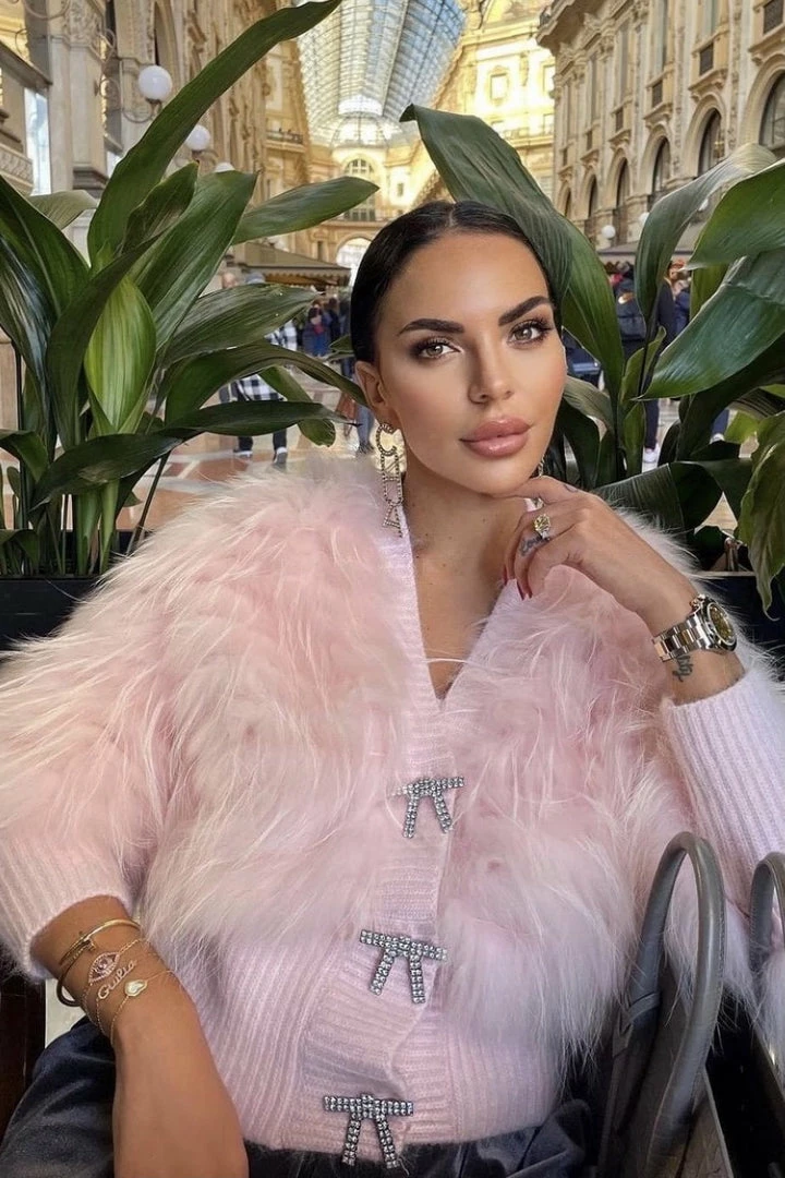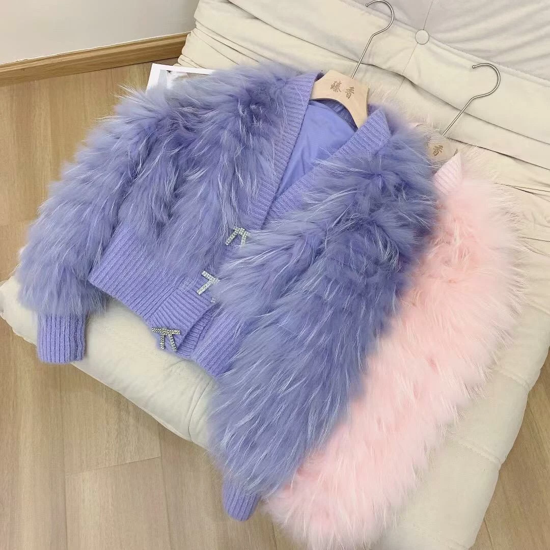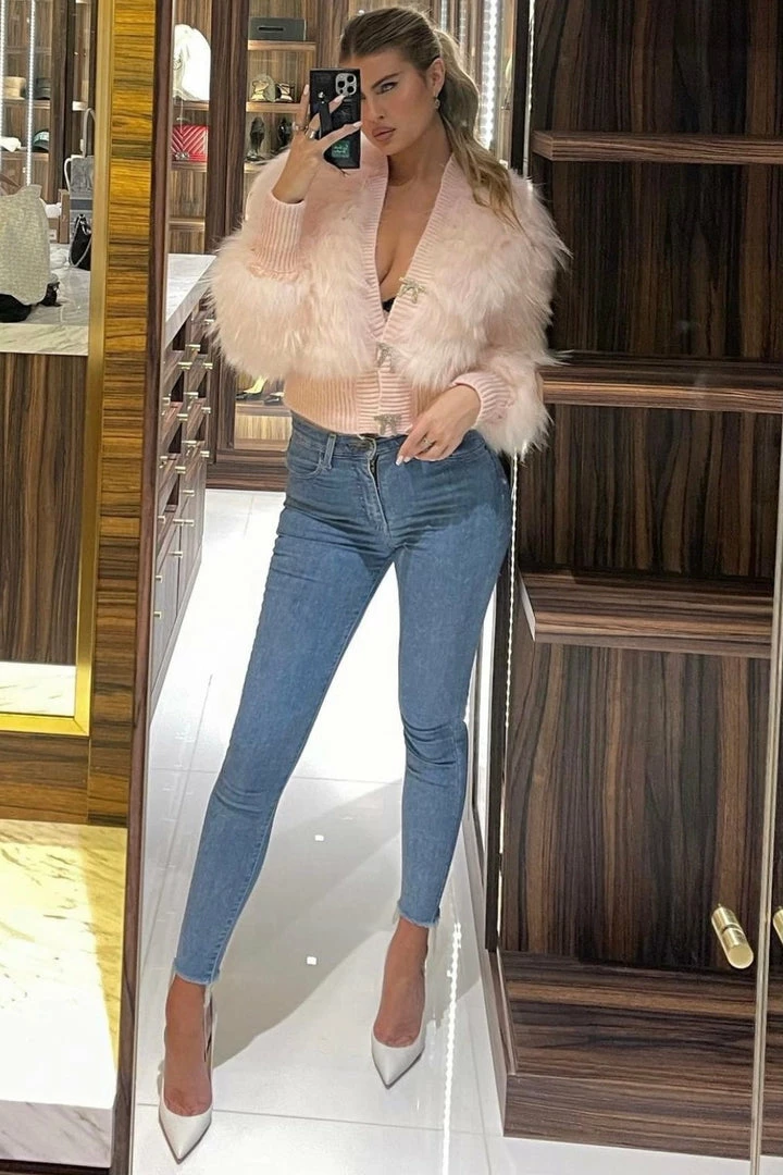 Step out in style during the chilly season with this adorable long sleeve, fur jacket with crystal bowtie buttons. Pair this over any outfit to become instantly cute.