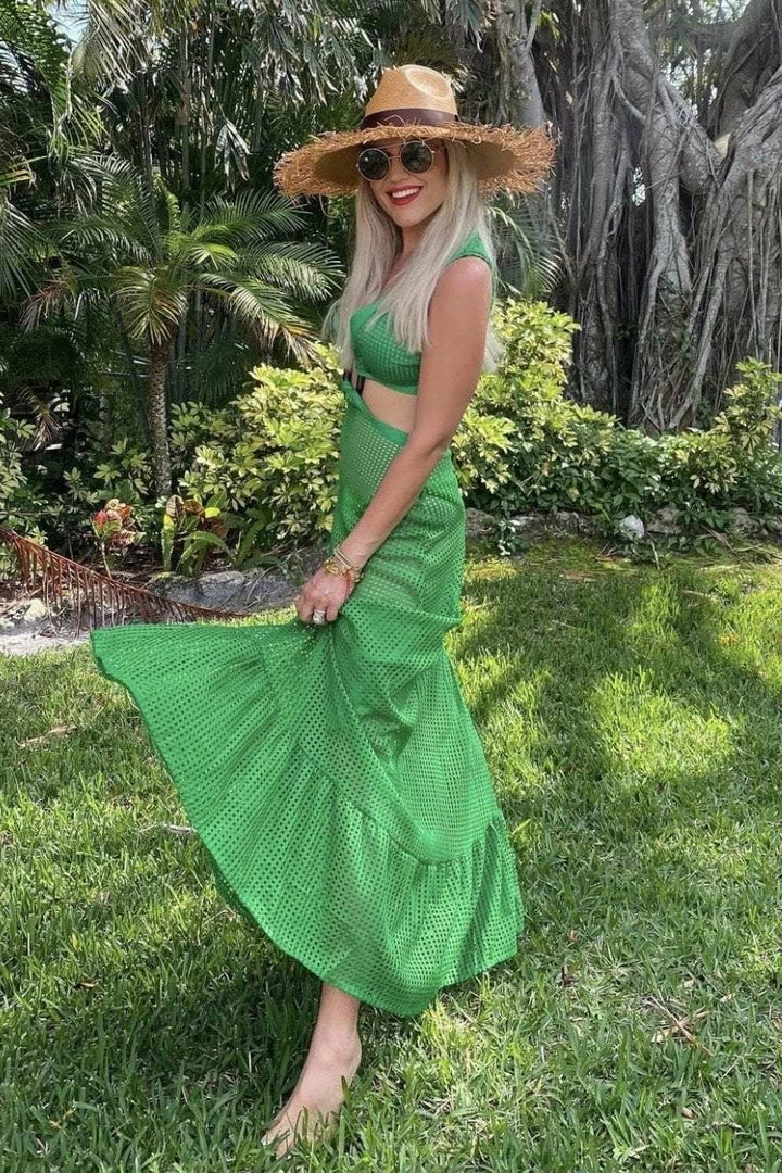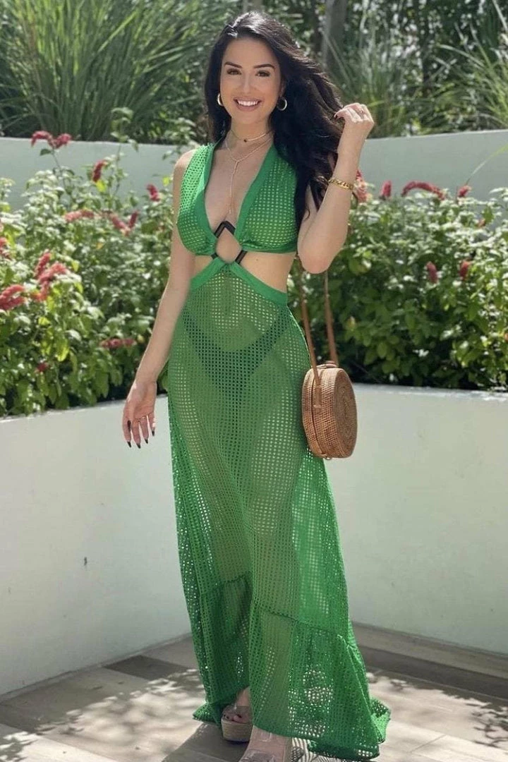 Slip into something sexy on your next getaway with the ‘Donte’ maxi! Featuring a gorgeous green color, cut outs around the waist, center ring detail, deep v neck, and a maxi length.