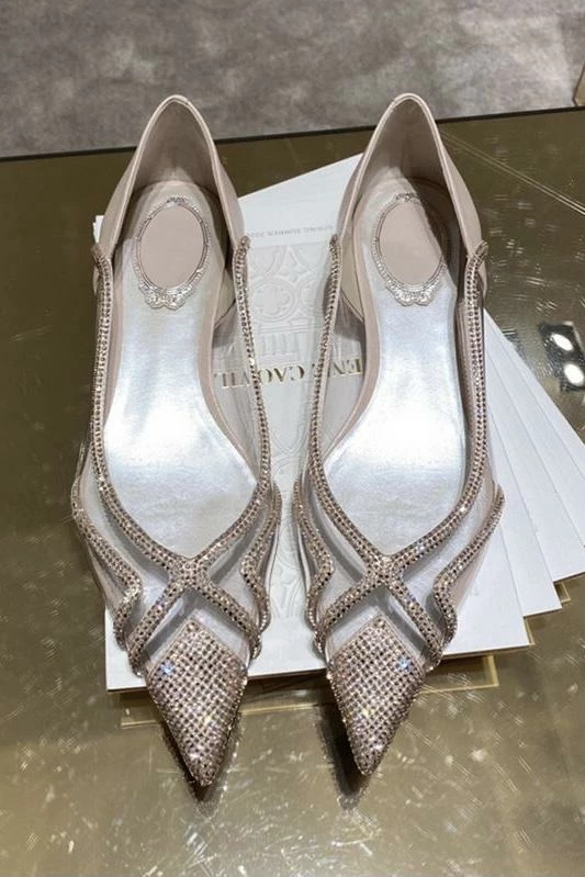 Bring total glam from head to toe with these stunning heels featuring a pointed toe, a clear and crystal decorated design, and an ankle strap. Pair this with any dress to add a little bling!