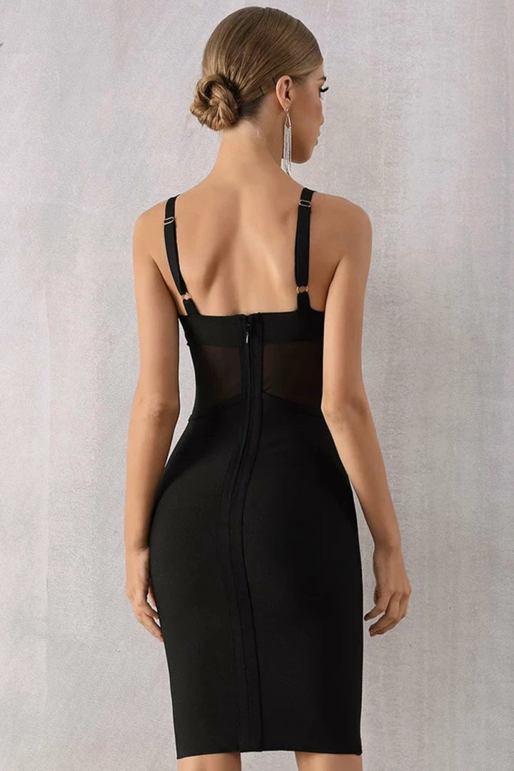 This hourglass creating dress is meant to fit like a glove. Featuring a beautiful bandage feel with a v-neck look and small sheer cutouts. Pair with neutral pumps for a classic and stylish look.