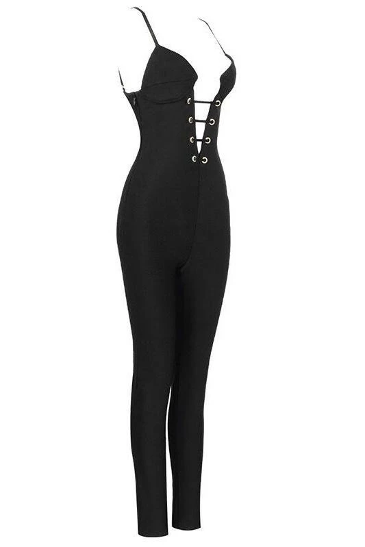 This sexy cut out jumper is a must. Featuring thin straps, a circle open bust, and cut outs down the torso. Pair with black ankle strap heels for an unforgettable look. Style this through the seasons with a leather jacket and pumps for a hot look on a colder night.