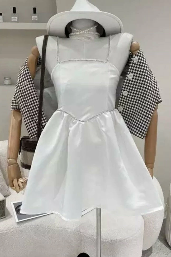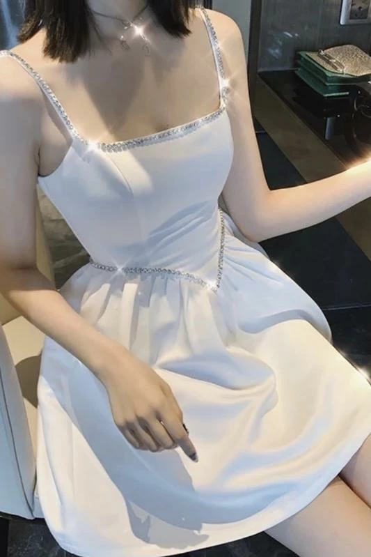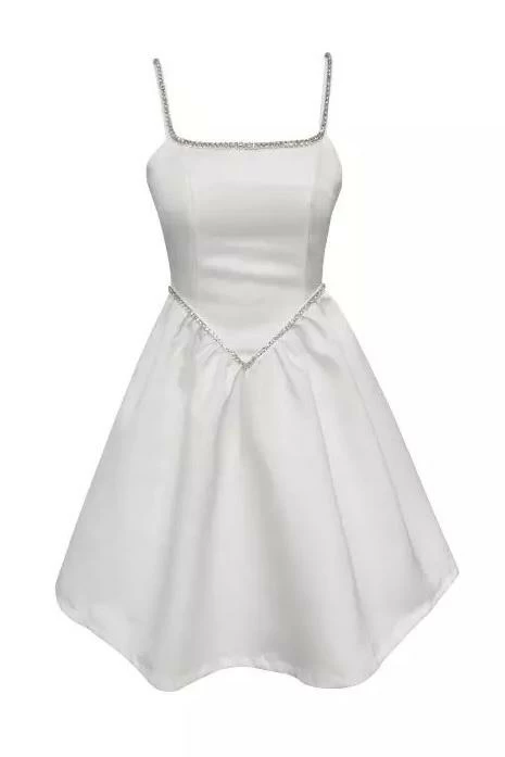 Feel like a princess in this stunning babydoll style mini! Featuring a silk-like mini dress with rhinestone, thin straps and detailing and a fit and flare style. Pair with cowboy boots for your next party or add rhinestone heels for your next birthday celebration!