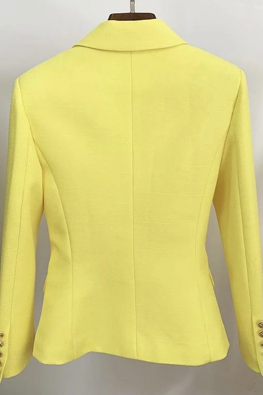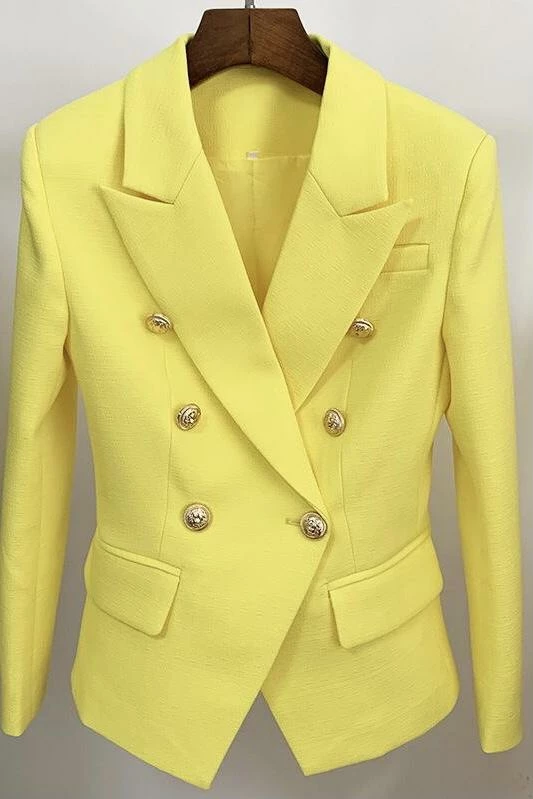 A staple blazer you need in your closet. Featuring a double breasted blazer with gold buttons on the cuff and down the front. Pair with the matching high waisted skirt or pair with skinny jeans and heels for a look the office will love.