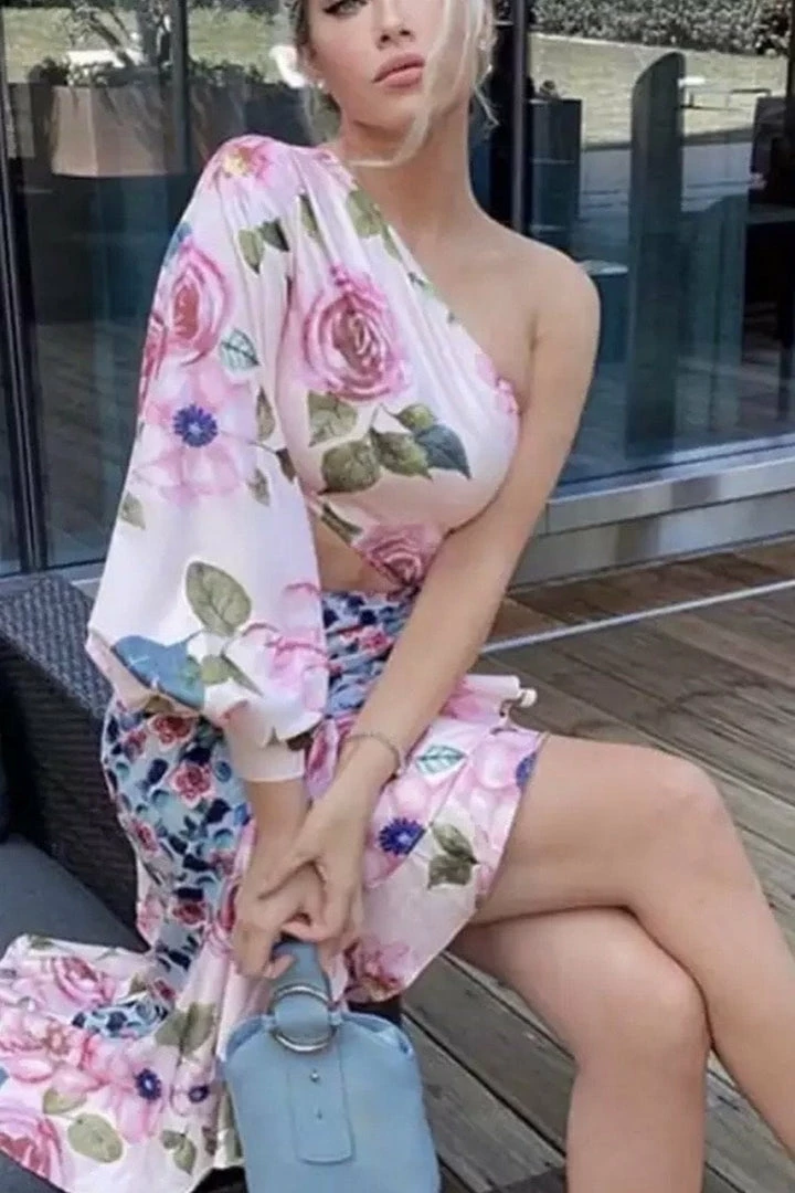 Jessica Bara Emilio One Shoulder Floral Midi Dress