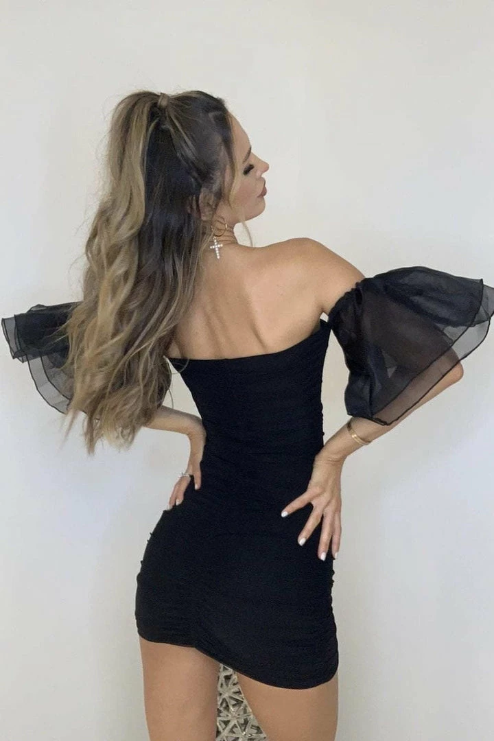 Add some flare to your going out edit with our ‘Fallon’ mini!! Featuring an off the shoulder style, puff sleeve, ruched material, and mini length. Pair with strappy heels and a cute clutch.