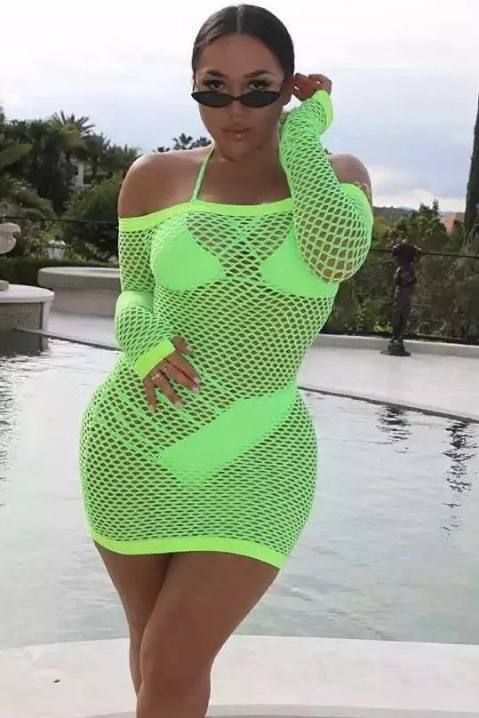 Jessica Bara Fiorella Fishnet Long Sleeve Cover Up Summer Lovin’
