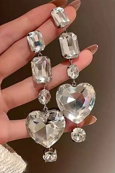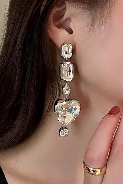 Glam up your outfit with these dazzling earrings. Featuring silver crystal dangle earrings with a heart decoration. Finish off your glamorous look with this perfect touch.