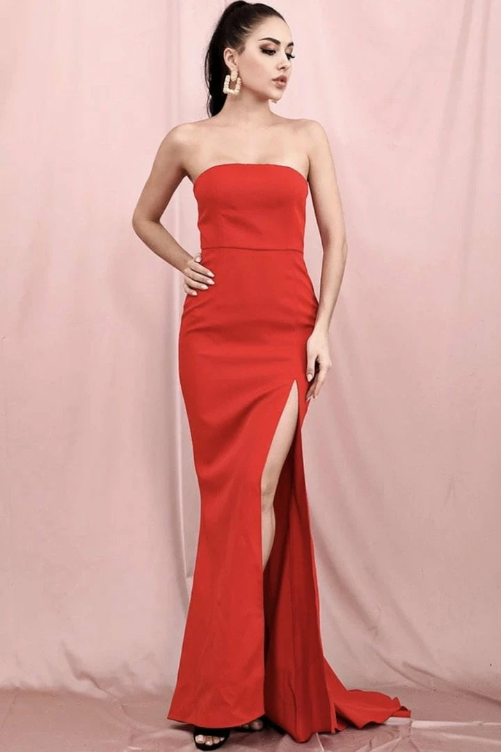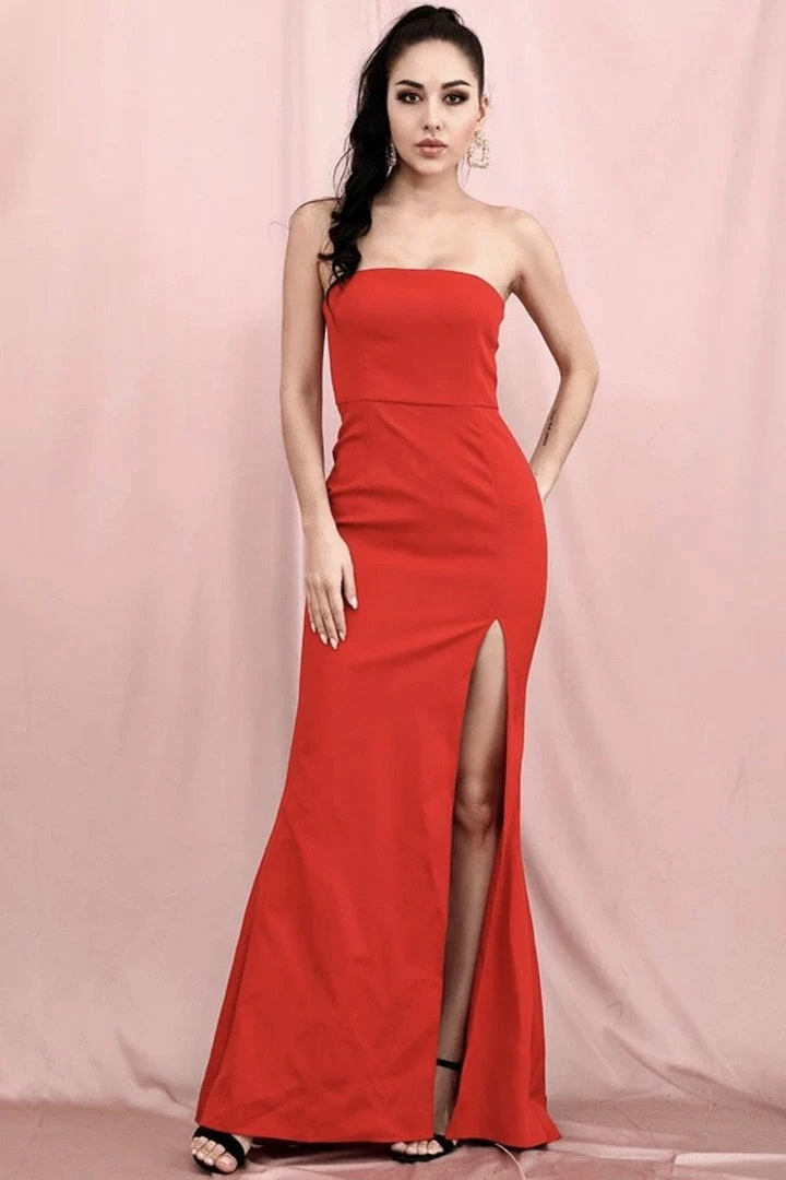 Go for the timeless look with the ‘Gillian’ gown! Featuring a strapless style, bodycon fit, and high leg slit. Pair with statement earrings and ankle strap heels.