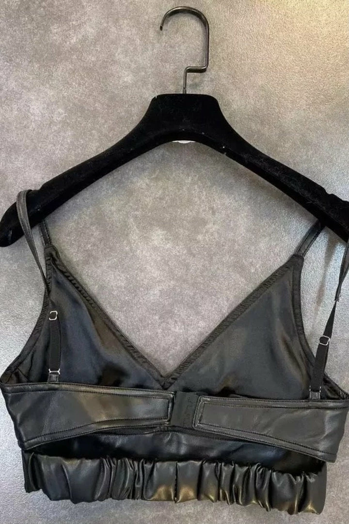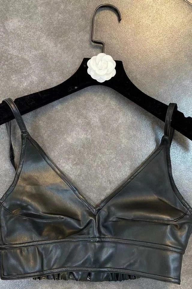 We are obsessing over faux leather dolls! This killer top features a PU material, tank top style, and cut out back. Pair with a mini skirt and heels for the ultimate date night look!