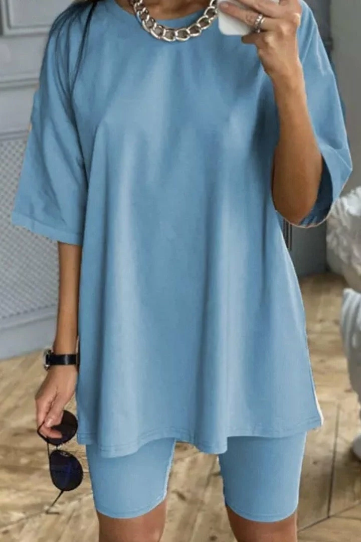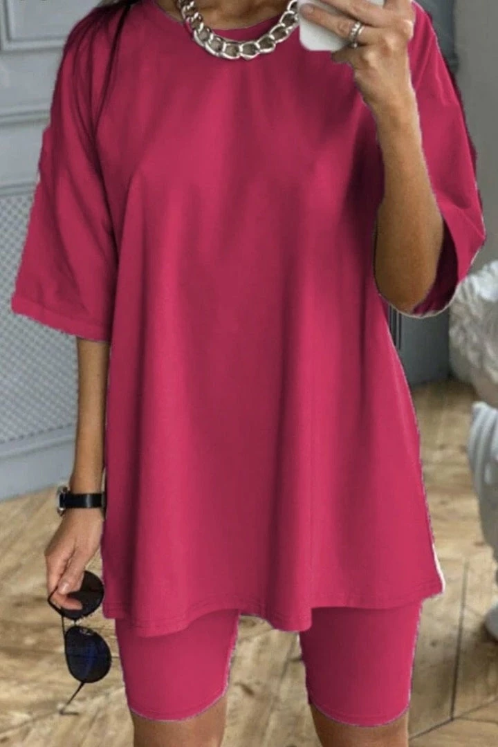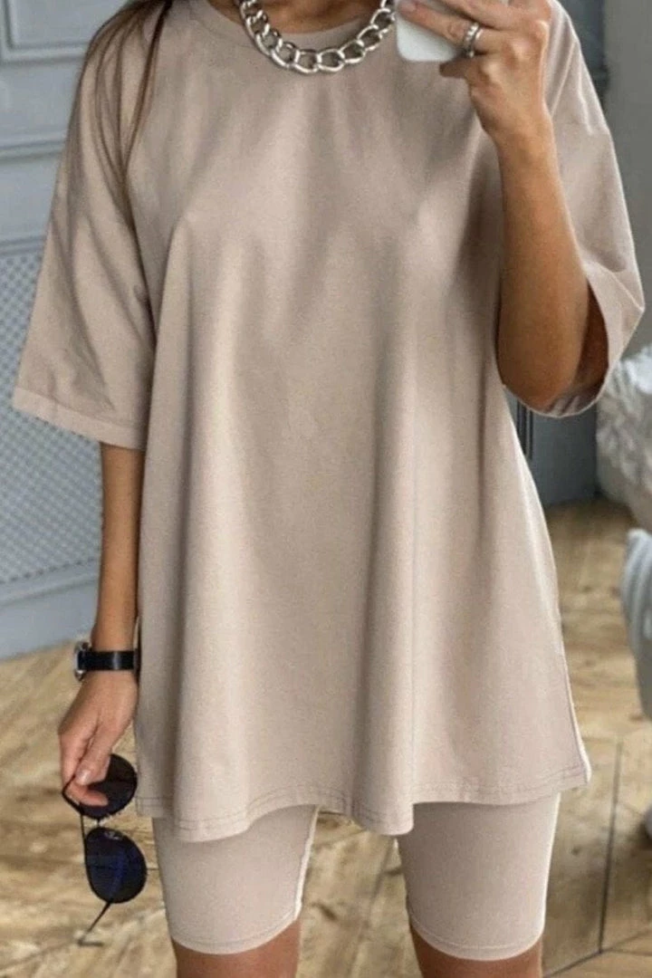 The perfect set for your everyday errands. Featuring an oversized short sleeve top with matching biker shorts. Pair with sneakers and sunnies for an easy look!