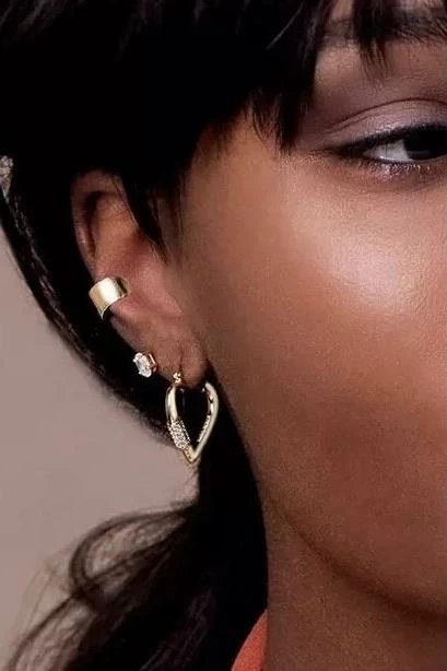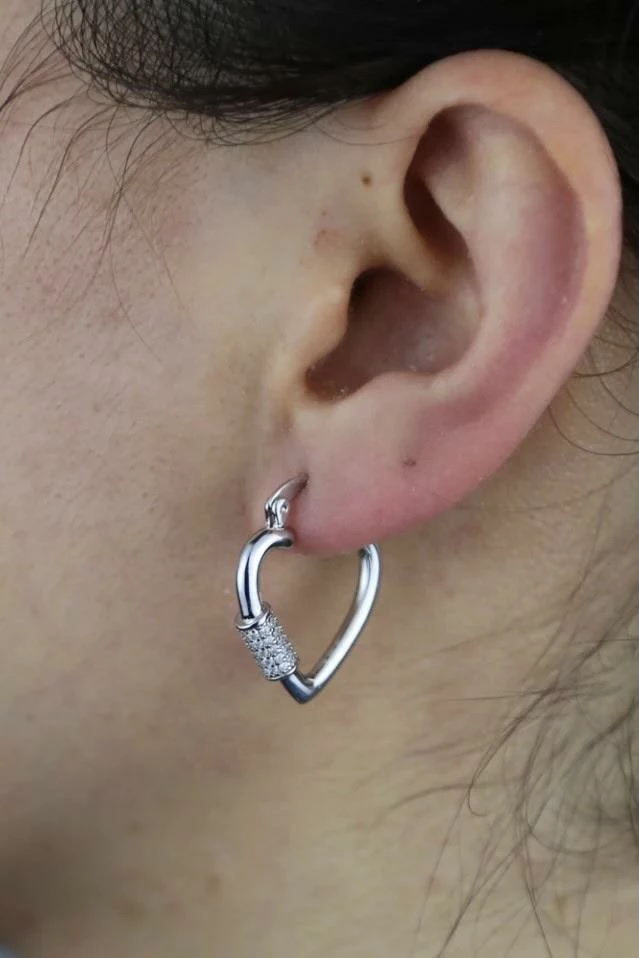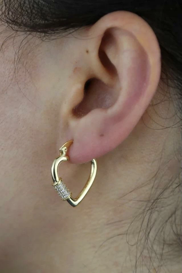 Fall in love with these heart shaped, crystal detail, mini hoop earrings. They are the cutest accessory to add some style to any outfit!