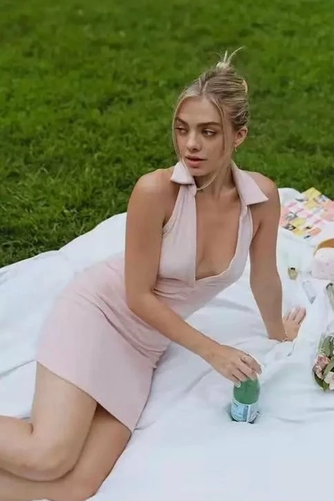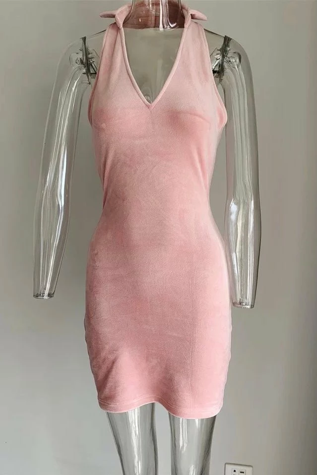 Live your Elle Woods moment in this adorable mini dress. Featuring a collared halter neck style, a velvet material, and an open back style. Style with small sunglasses, a mini bag, and chunky sneakers for a casually cute look. Take this piece day-to-night by swapping for strappy heels!