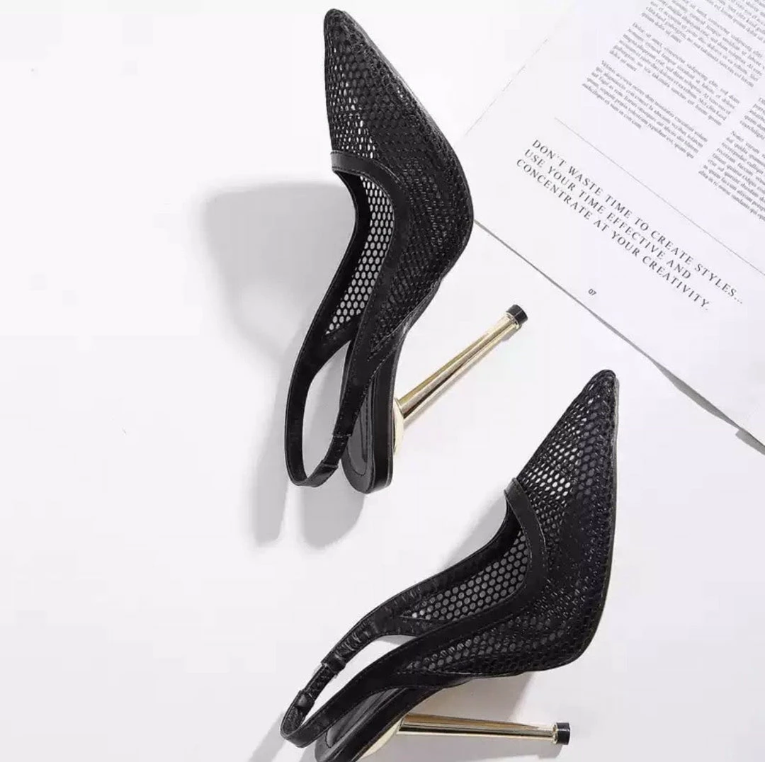 Turn into an immediate fashionista with these fishnet style slingback heels. They’re the little pop to your outfit that you’ve been missing!