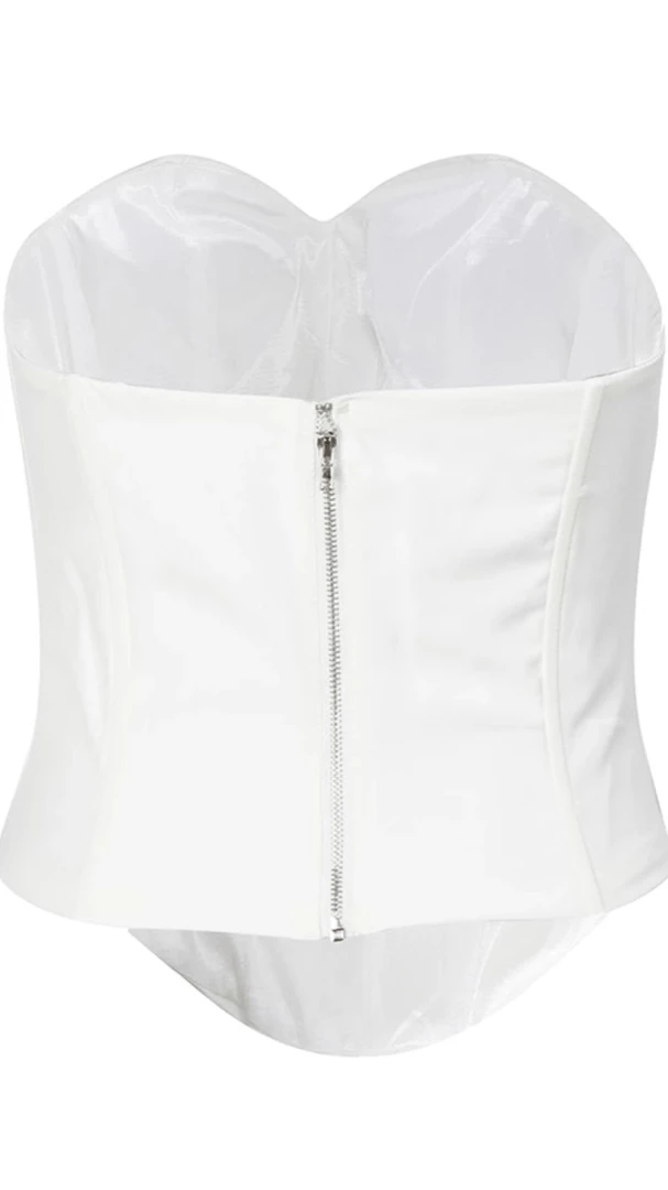 This sexy corset top features a strapless style, a zipper back, and a cropped fit. It has corset boning to the front and it zips to the back for easy on. Looks great with jeans or a pencil skirt.