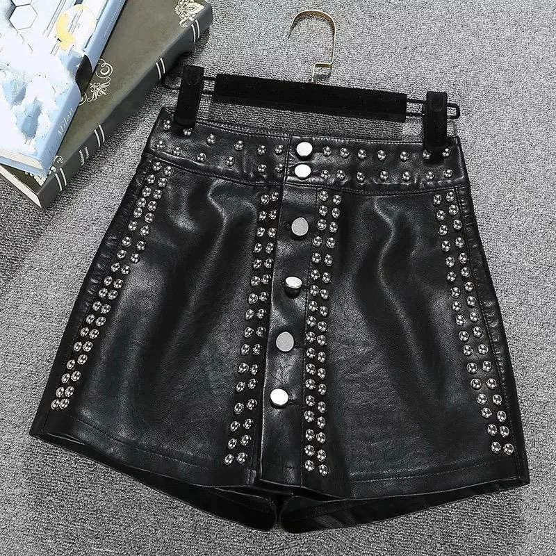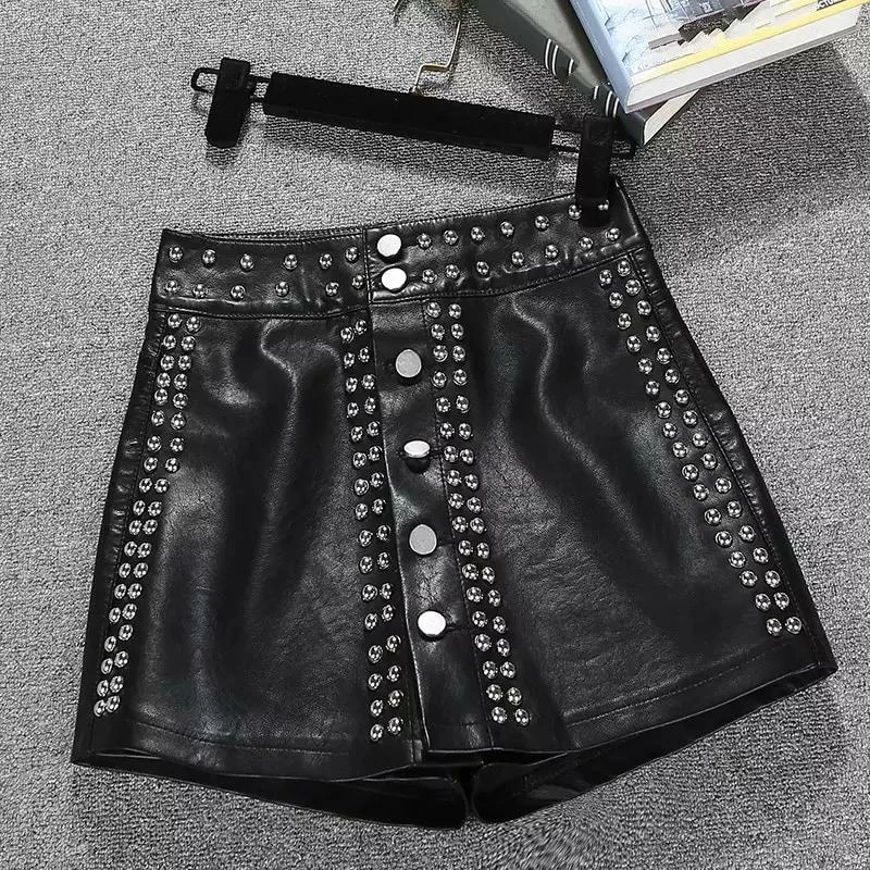 Leather weather is upon us dolls! This piece features a skirt in the front with shorts underneath and silver studding decorated throughout. Pair with a knit long sleeve top or your hottest bodysuit with boots for a look that’ll rock your night out!