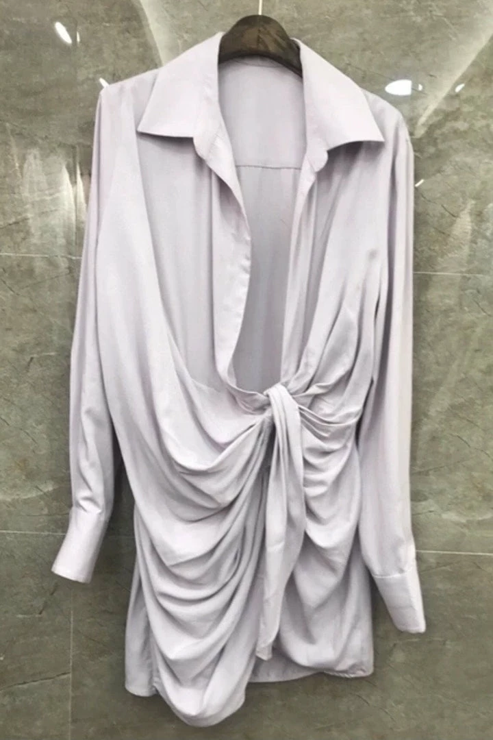 This dress is sure to have you feeling chic this season. Featuring long sleeves, collar, drape detailing and a plunge neckline. Team this with booties and a mini handbag for a cute night out look!