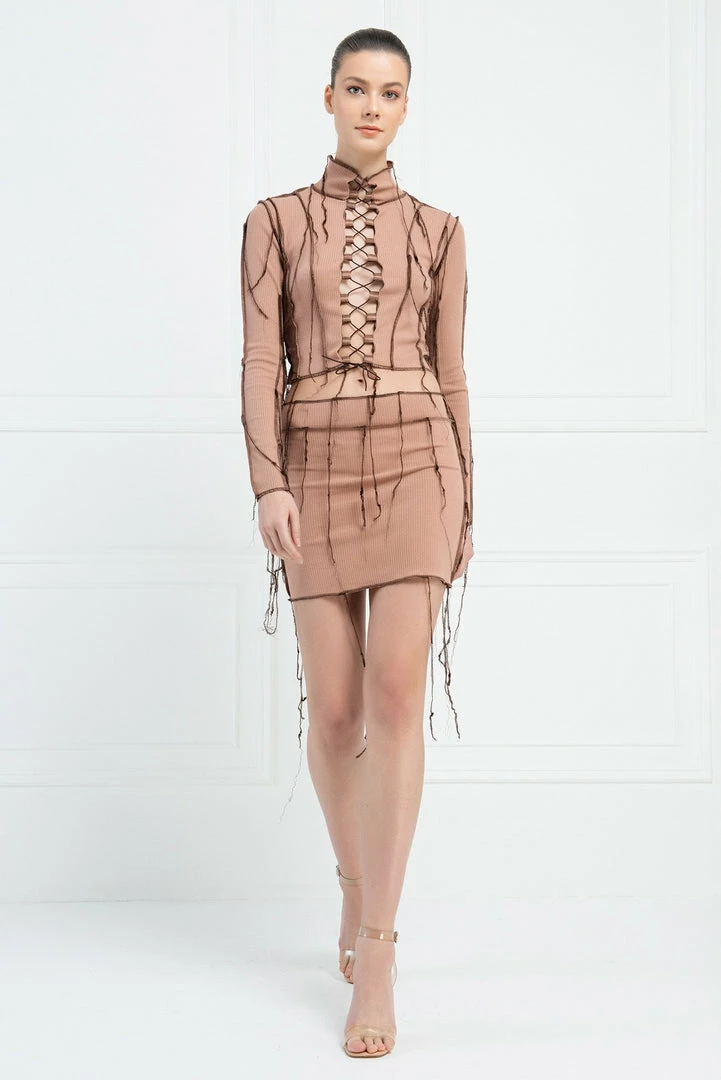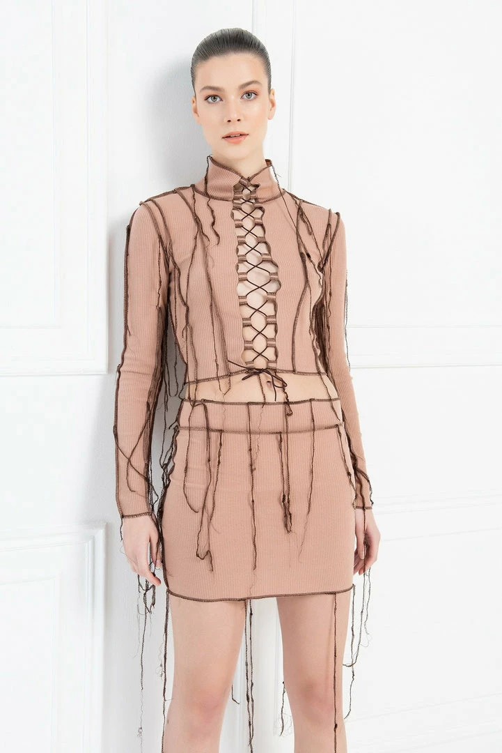 Jessica Bara Jaime Distressed Top & Mini Skirt Two Piece Set