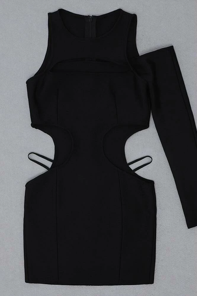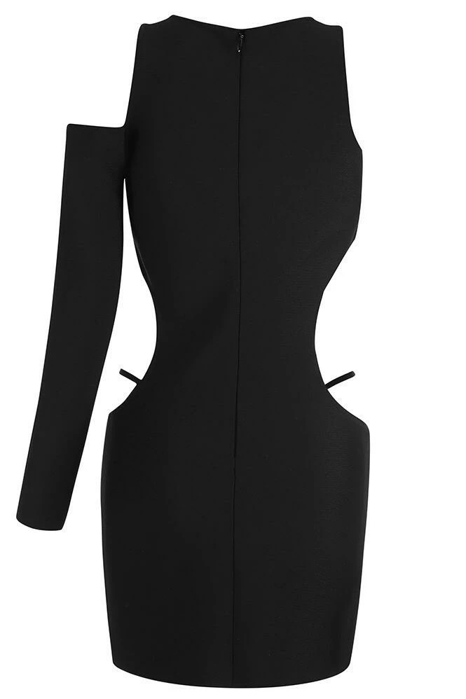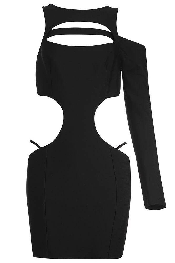 Show off all those curves in this ultra cut out mini dress with a one shoulder, cold shoulder and a high neck. Team this piece under a leather jacket with leather boots for a knock out look!