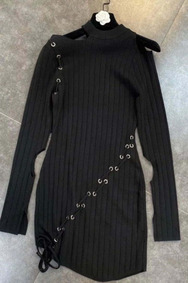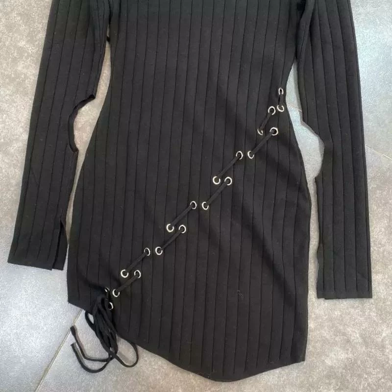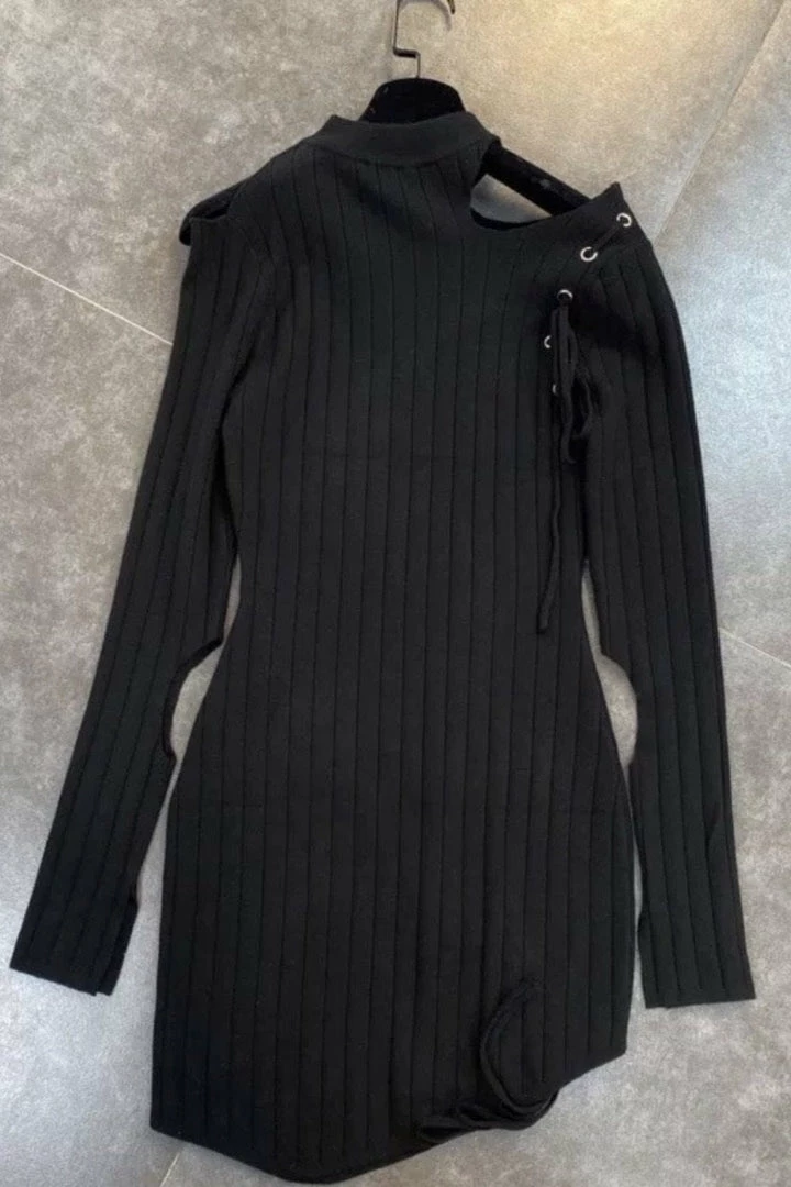Be comfy but sassy in this knitted dress this weekend. Featuring a black material with a lace up design, and cold shoulder detail. Team this with fresh kicks for a look we’re loving.