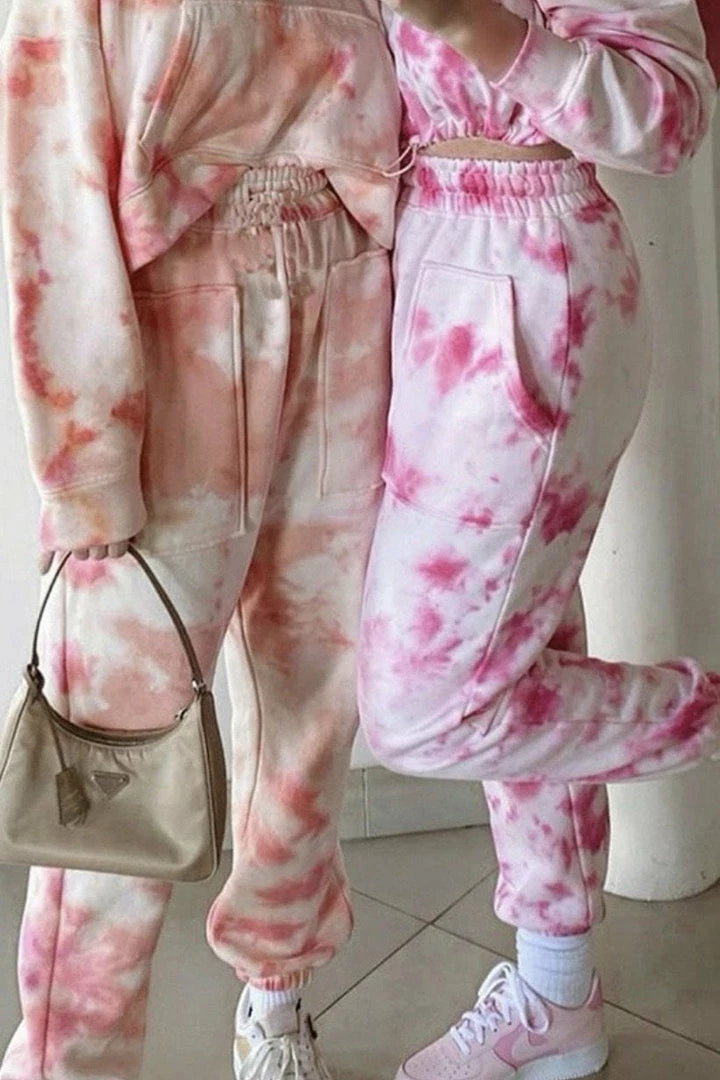 Throw on these super fun sweats when your in the lounging mood! Featuring a high waisted fit, jaw string waist, tie dye material, and jogger fit. Pair with a white tee and sneakers for an easy trendy look.