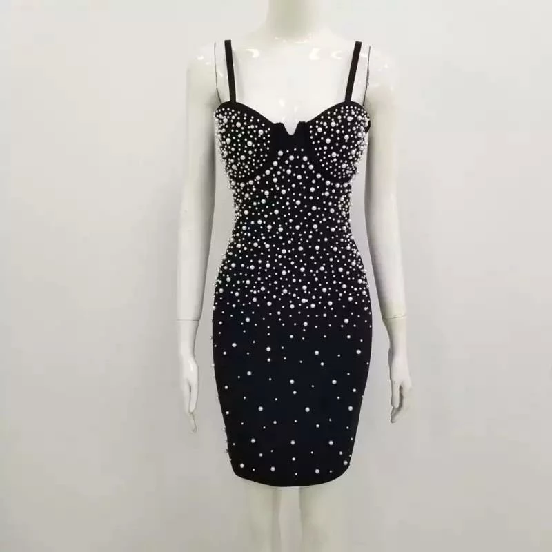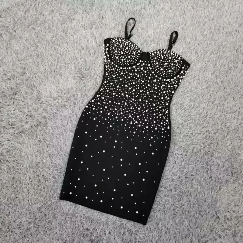 Stop the show In this thin strap, outer bust lining, pearl decorations, and a bodycon fit. Pair this with our Sandra heels and a mini clutch for a sexy date night look or a unforgettable birthday outfit.