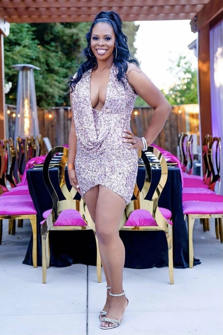 Jessica Bara Kathie Sequin Draped Mini Dress