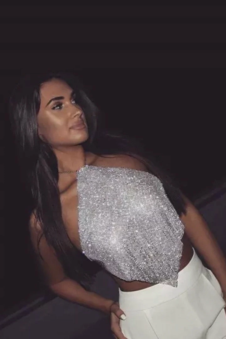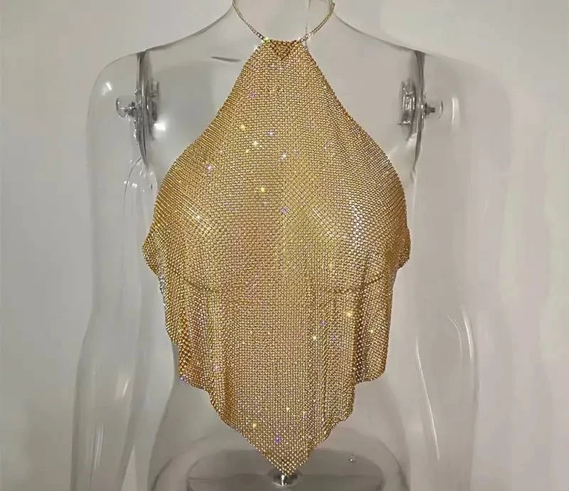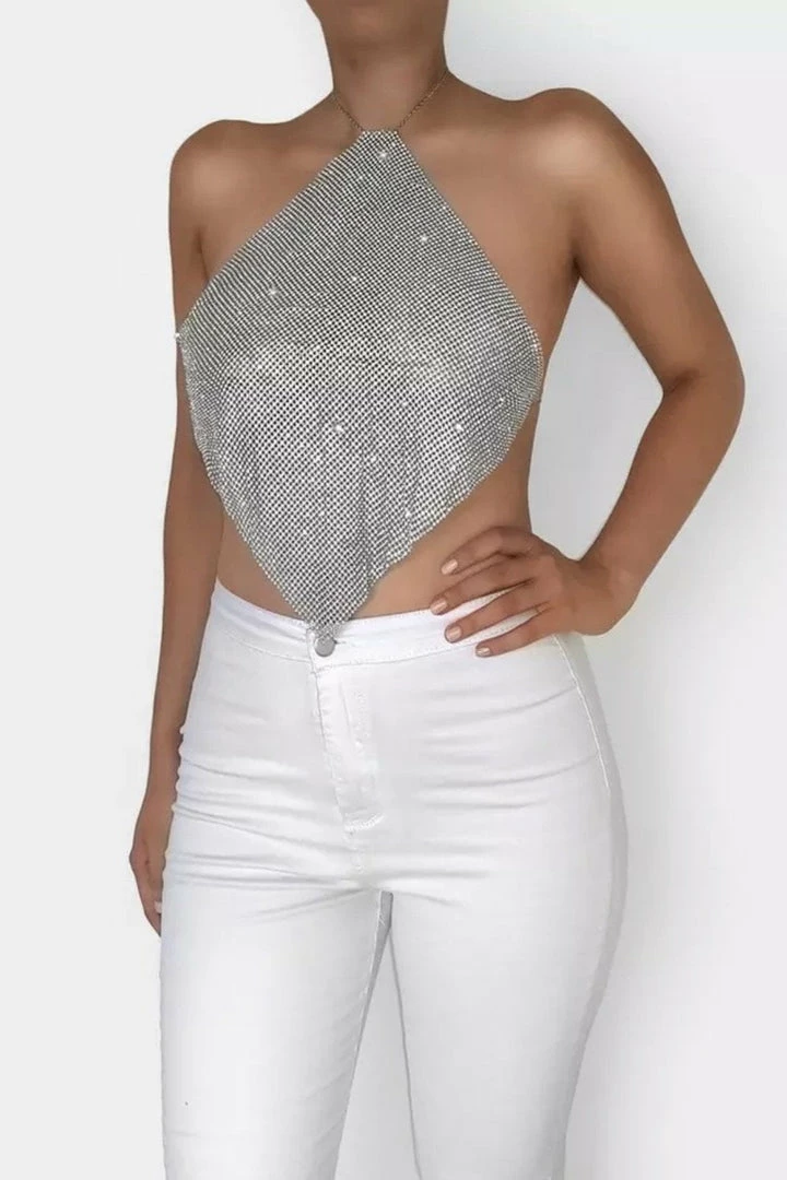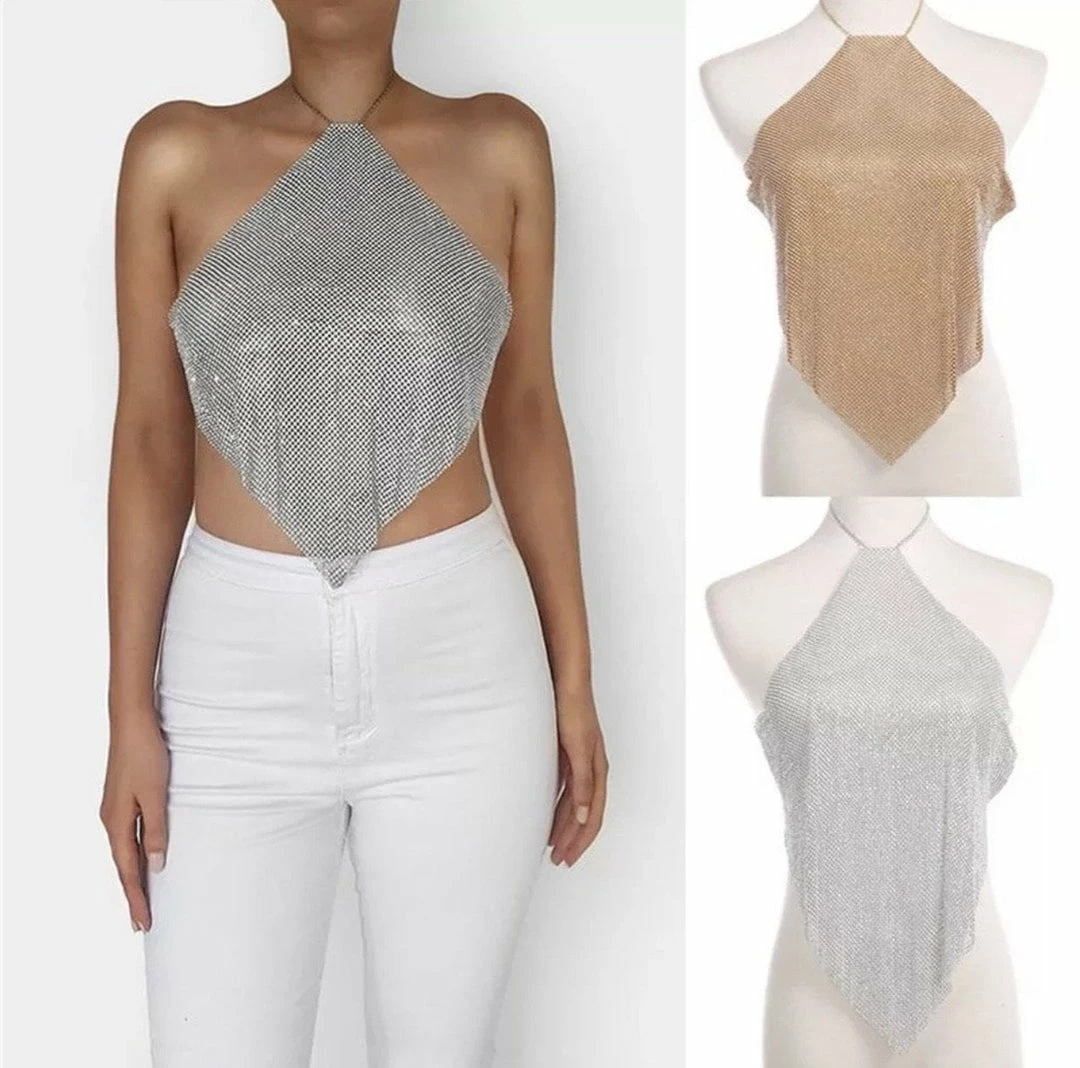 Diamond shape crystal mesh chain mail tank. Pair it with a sexy skirt or latex pants!