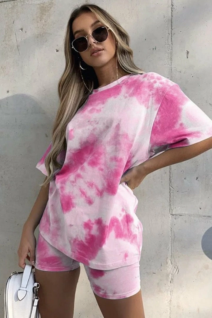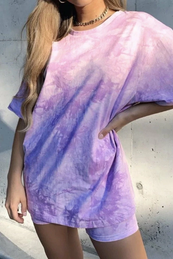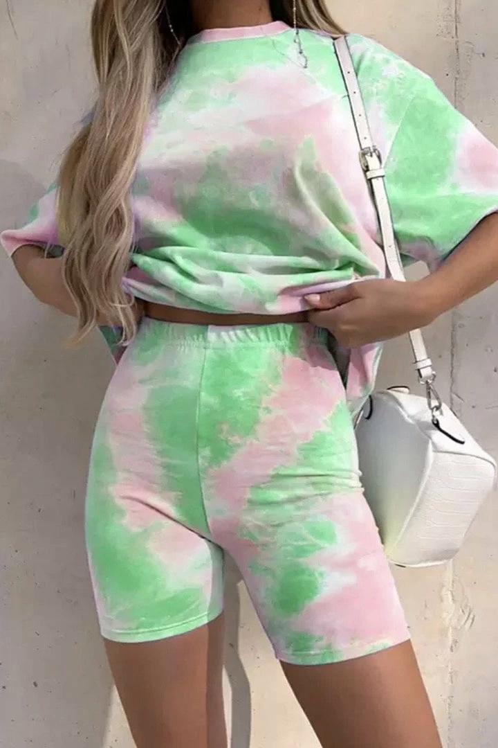 Look like an absolute style queen in the ‘Kenya’ two piece set! Featuring a tie dye material, short sleeve top, and matching biker shorts. Pair with a mini backpack and oversized sunnies for an effortless trendy look.