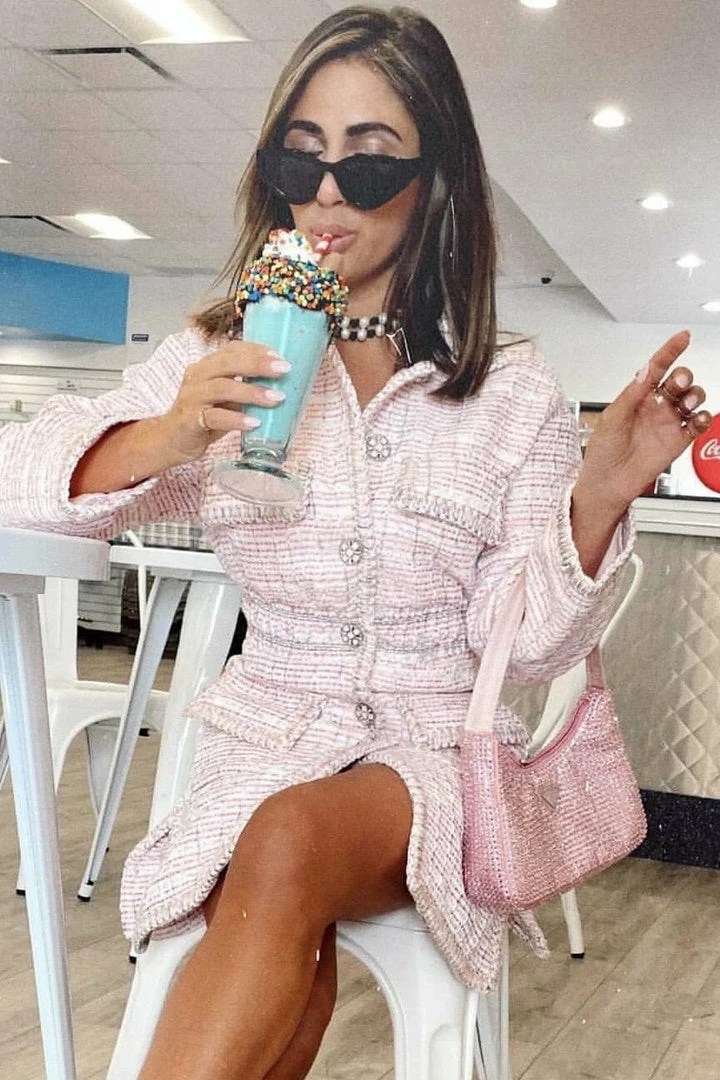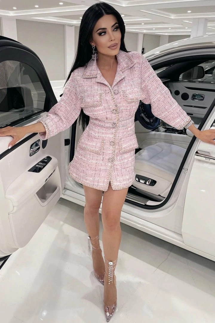 Can be worn as a mini dress or unclasp the buttons to wear open as a jacket.