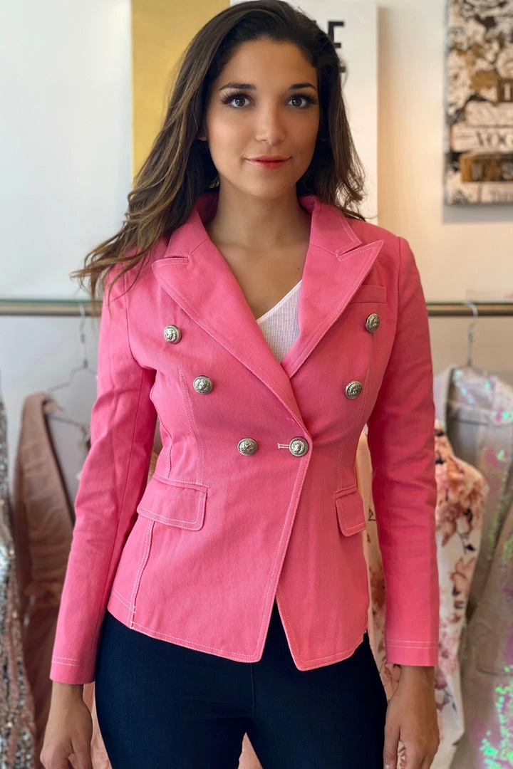Jessica Bara Kiana Denim Double Breasted Blazer