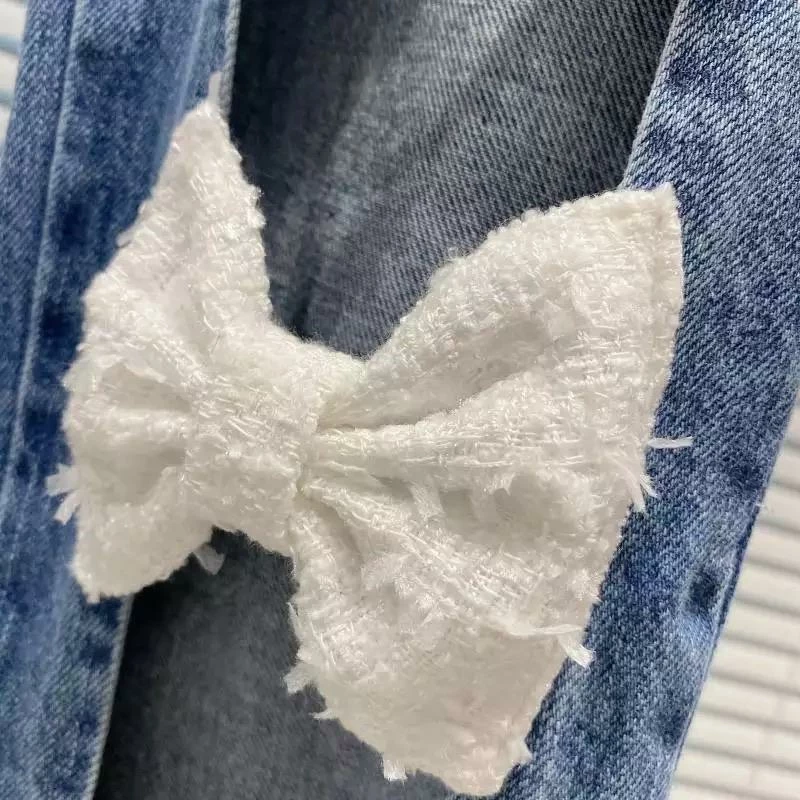 We are obsessing over these jeans for any occasion doll. Featuring a dark wash denim material with bowknot details, cutouts, and a skinny leg fit, we are obsessed! Team them with a blazer and strappy heels for the perfect outfit.