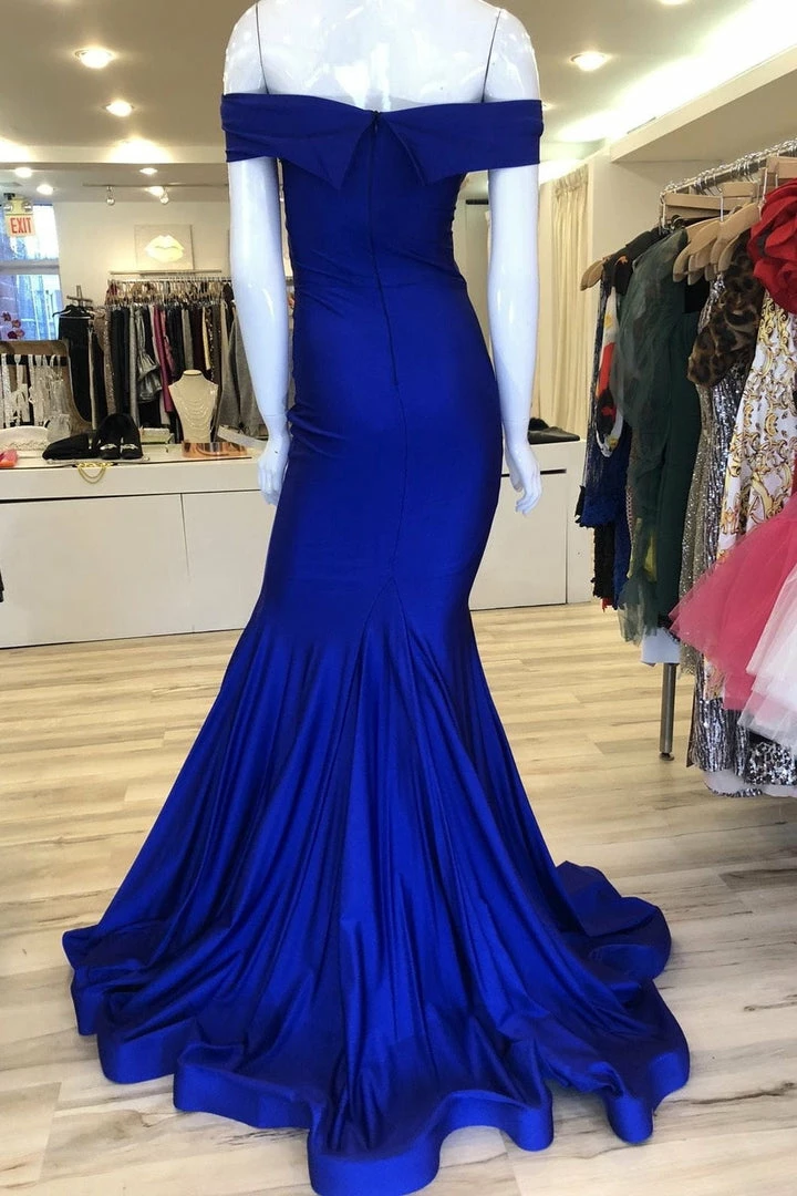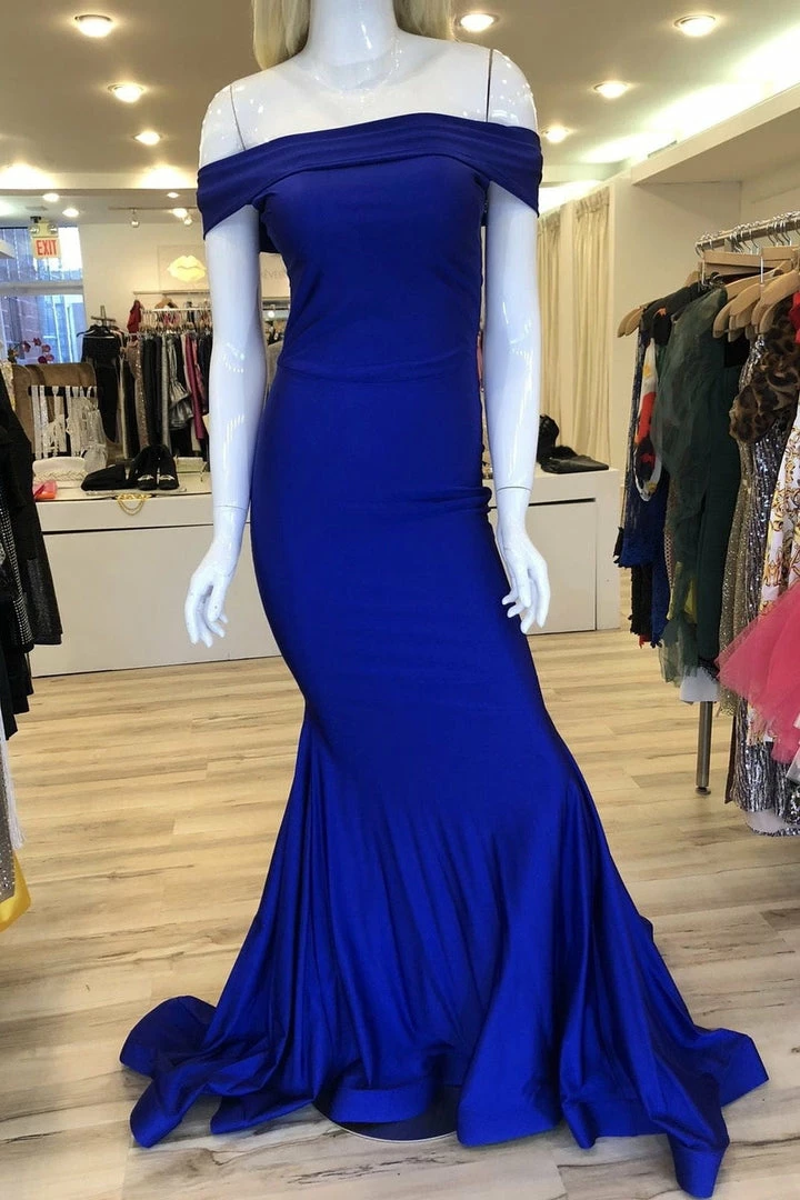 Have all eyes on you in this gorgeous floor-length gown! Featuring an off the shoulder style, bodycon fit, and stunning royal blue color. Pair with a choker necklace and tousled waves.