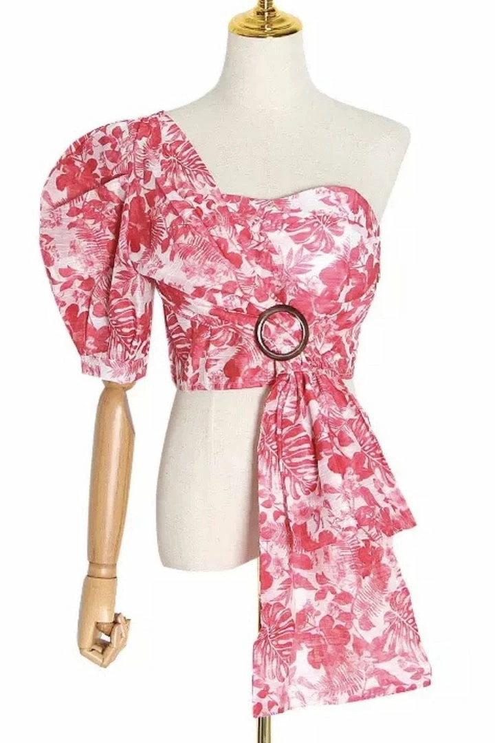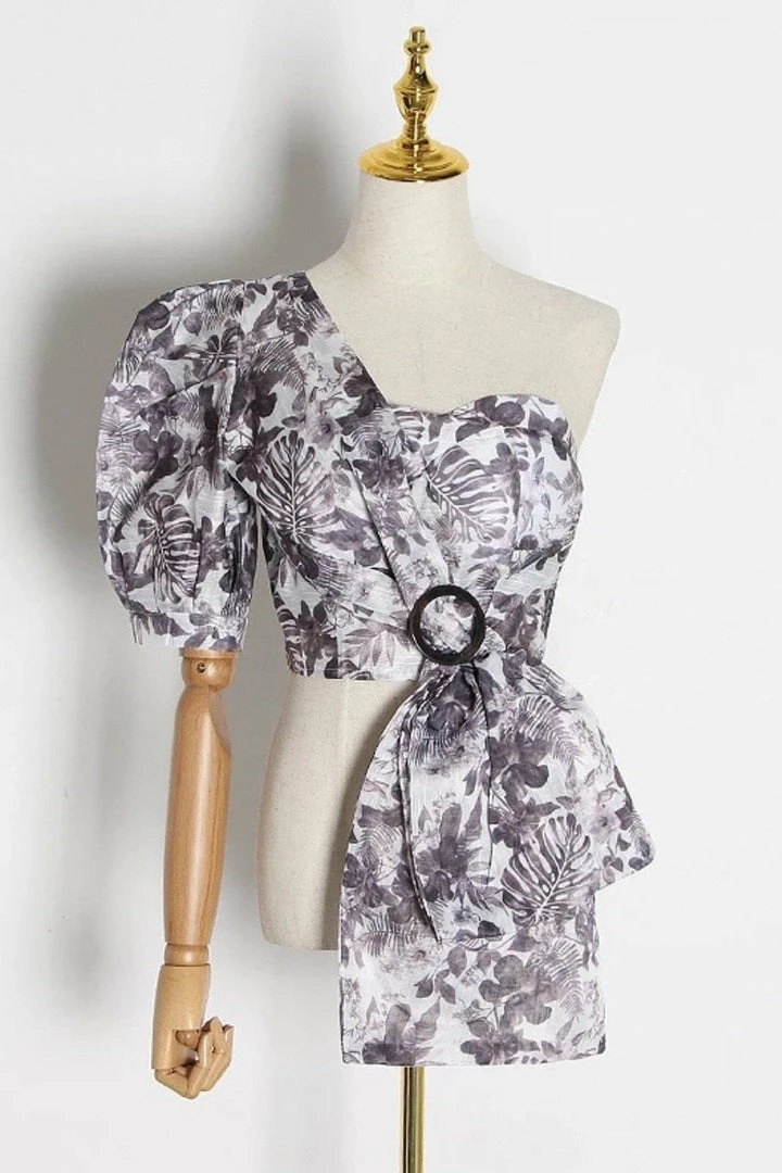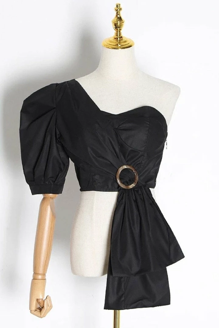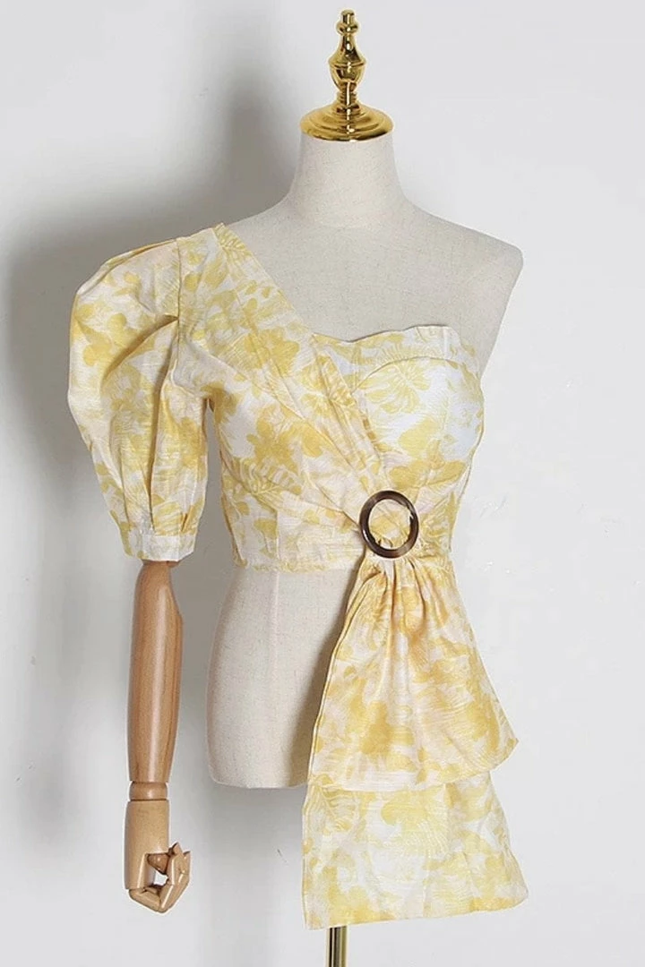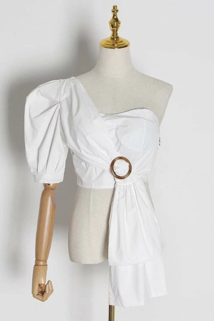 Jessica Bara Kyle One Shoulder Puff Sleeve Crop Top Summer Lovin’