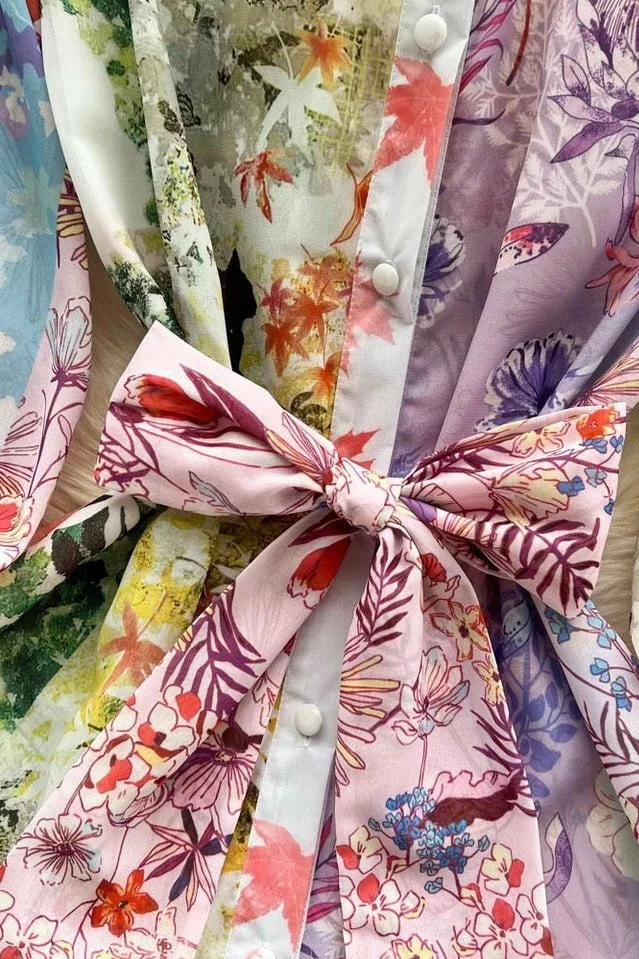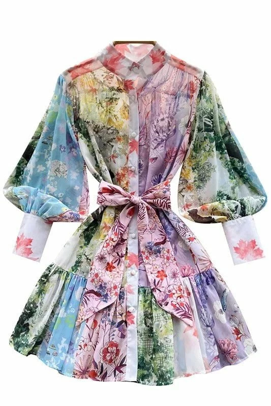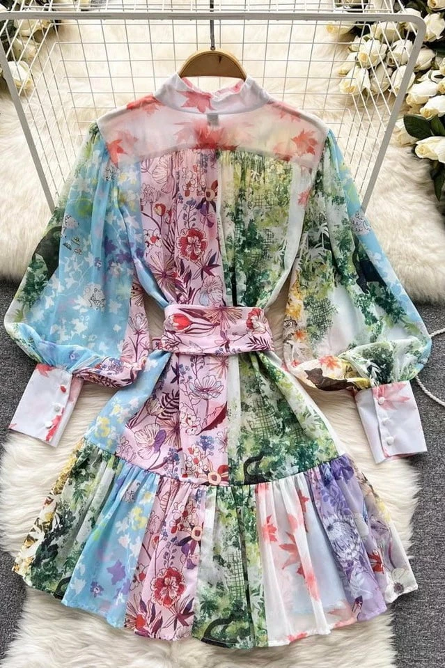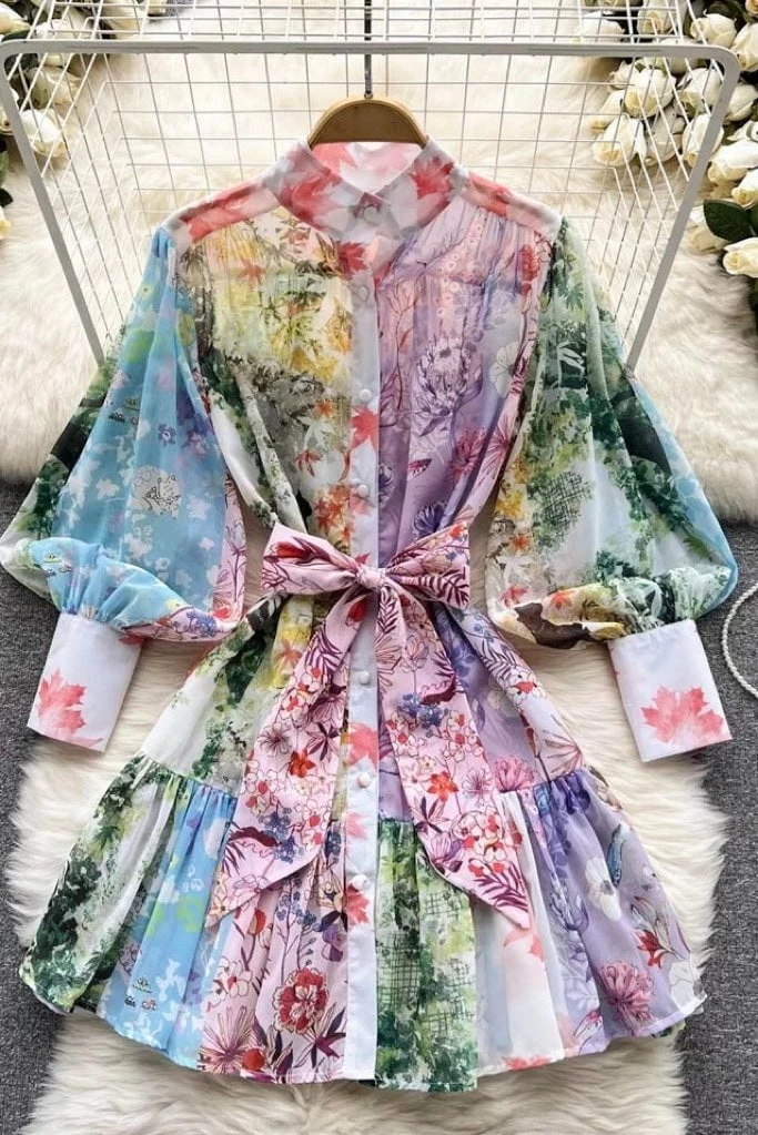 Look absolutely stunning in the ‘Leandra’ dress! Featuring a printed floral material, high neckline, bow tie waist, long sleeves, and a mini length. Pair with nude heels and a mini bag to serve some serious looks.