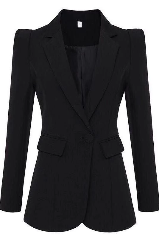 Add some serious sophistication to your style with a staple sharply tailored blazer. Featuring structured shoulders, pockets, and a button closure.