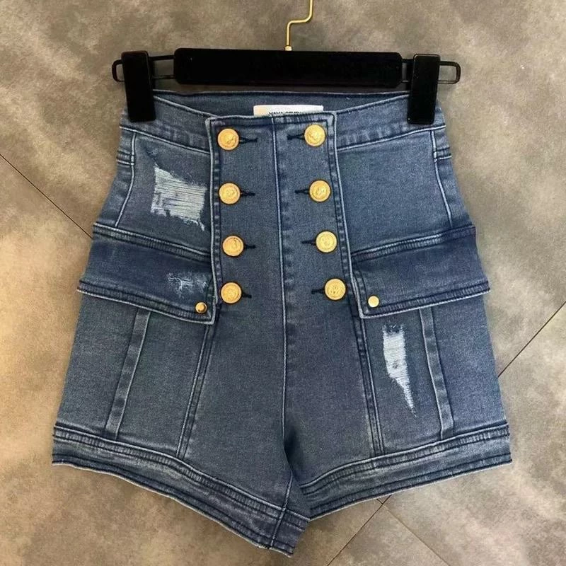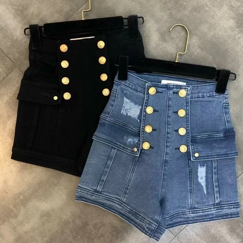 Every doll needs a pair of these shorts for their spring/summer wardrobe! Featuring a denim material, high-waisted fit, and gold button embellishments. Can be dressed up or down!