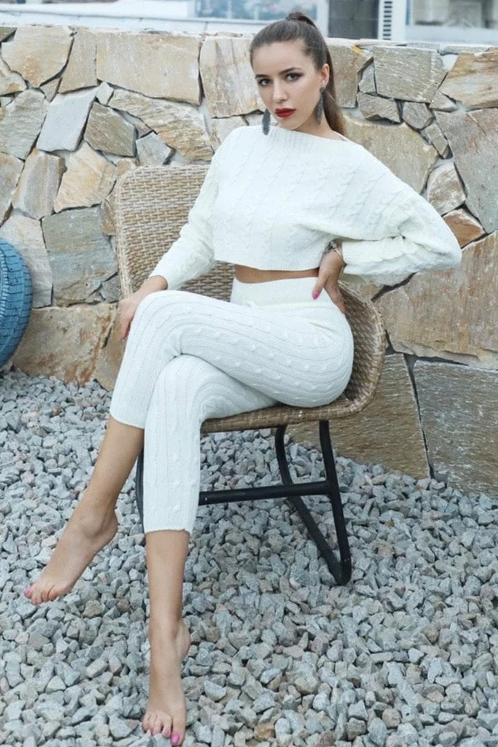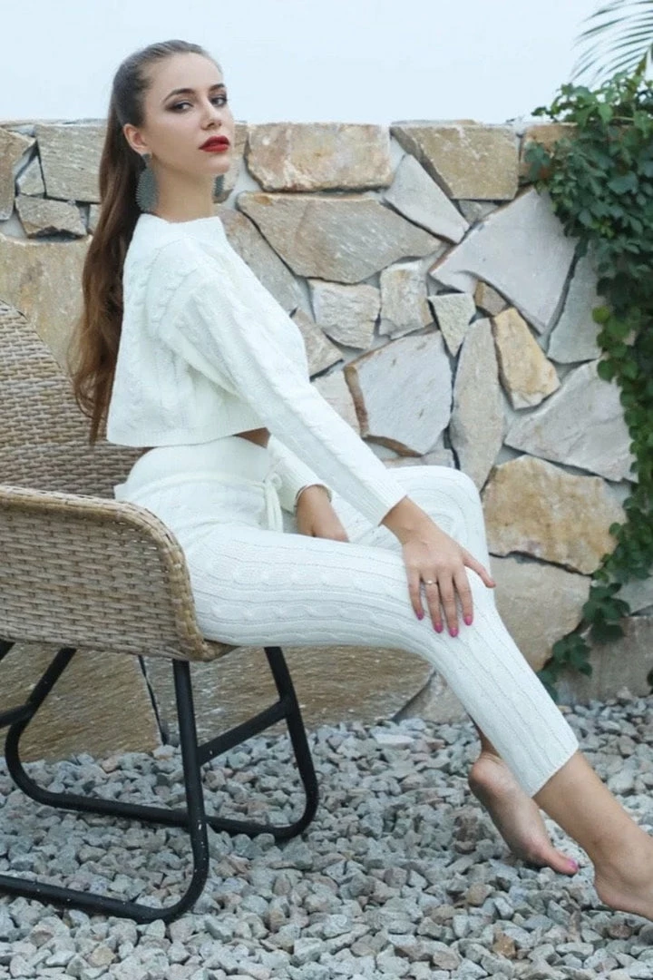 The perfect set for lounging! This set features a cropped knit top with matching leggings. Pair with sneakers and a high ponytail for a cute everyday look.