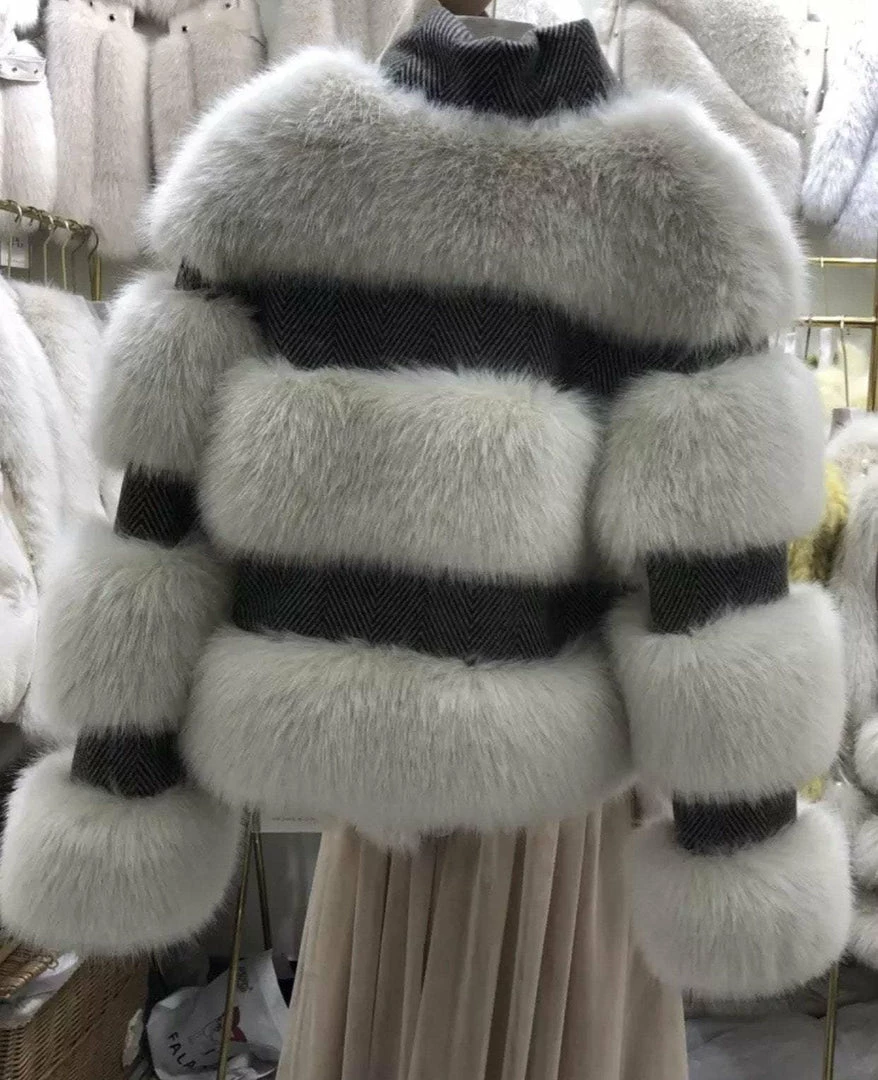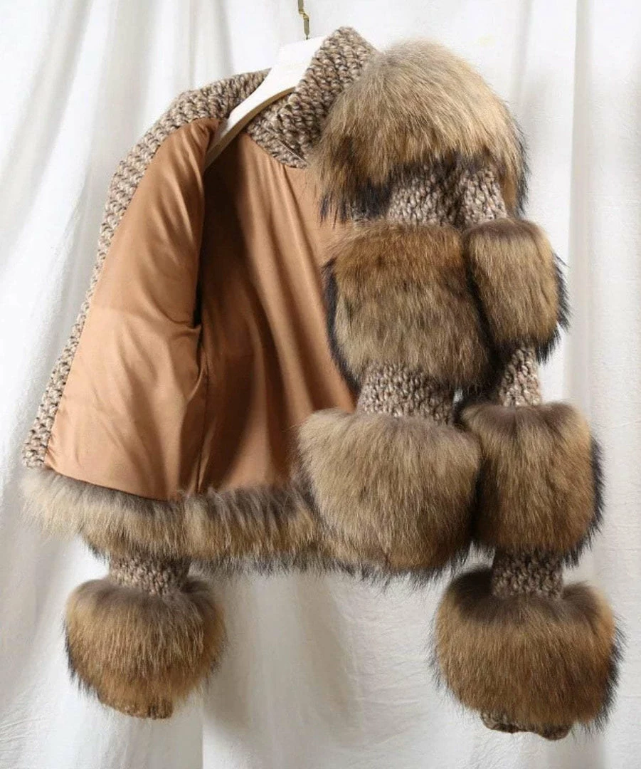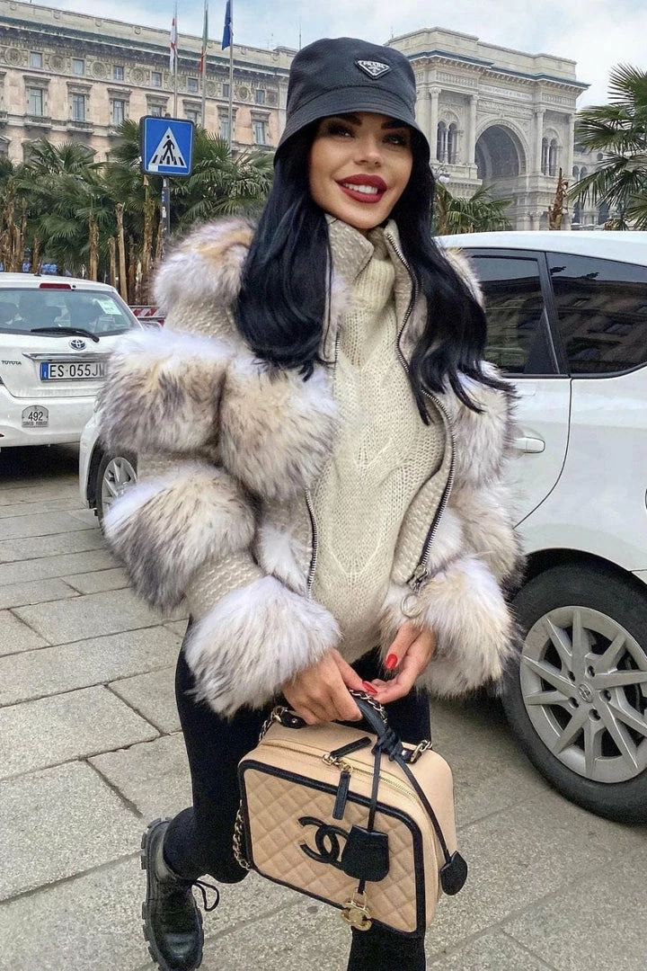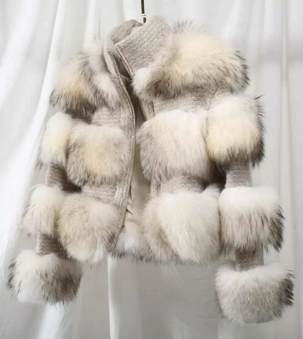 This fur jacket is your new season staple doll. Featuring raccoon fur and wool material, zipper closure, and long sleeves.