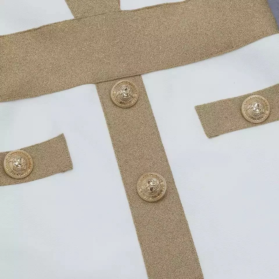 This stunning mini features short sleeves, white and beige color contrasting, and gold button detailing. Perfect for a brunch day, a shopping trip, a work meeting, or a late night rendezvous for drinks!