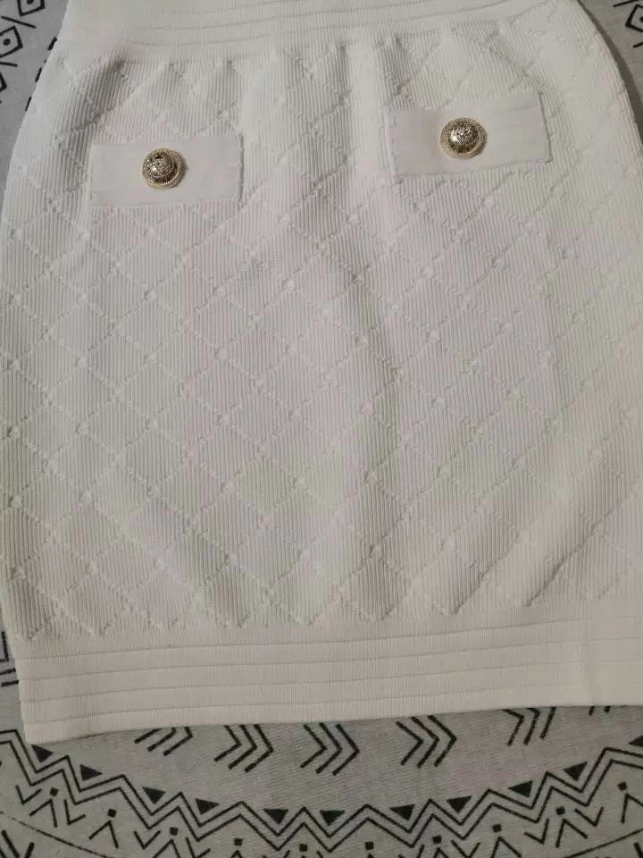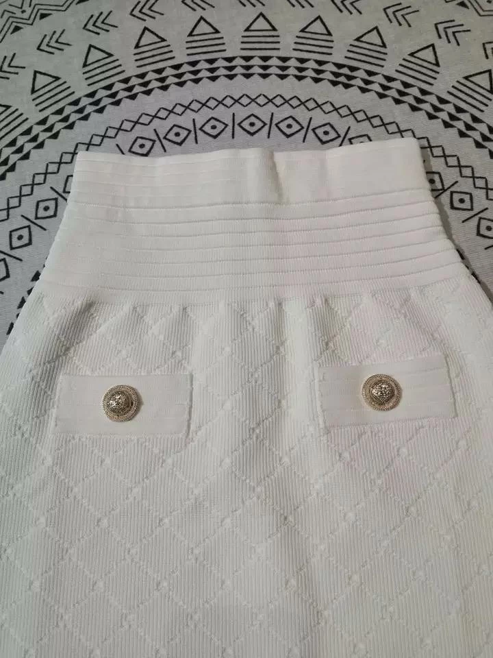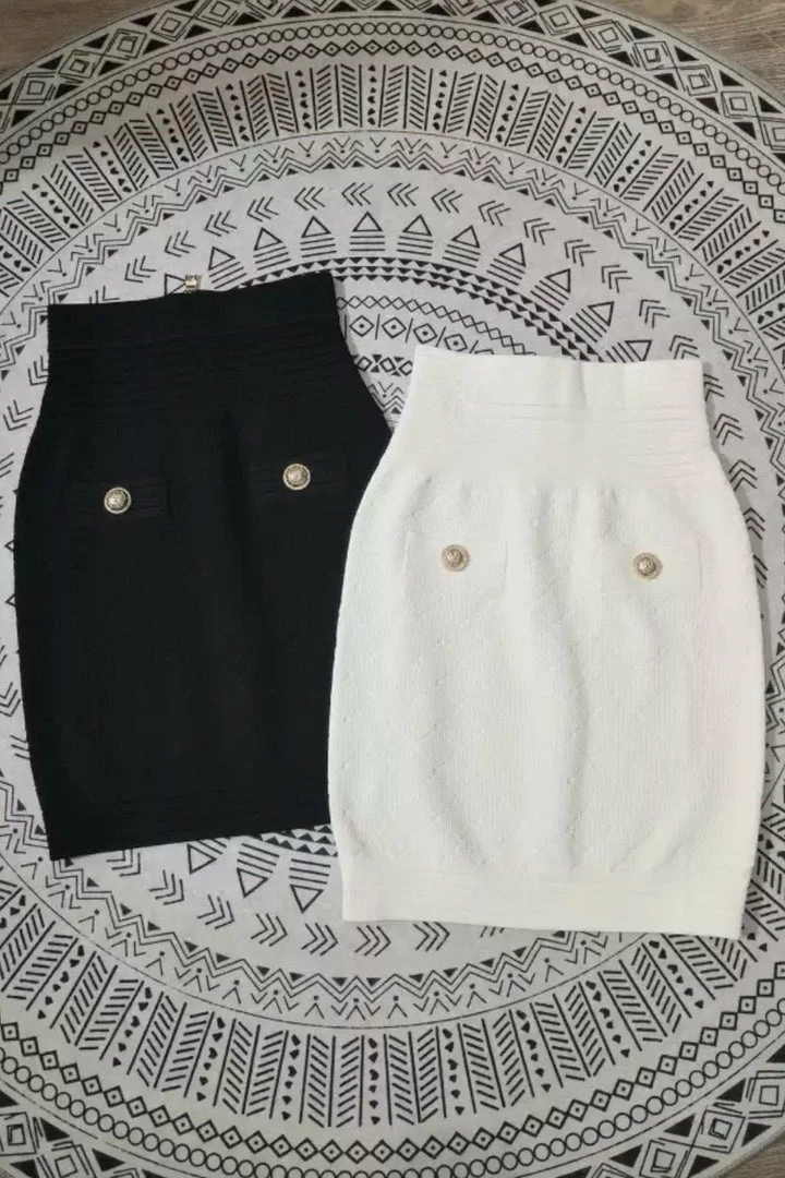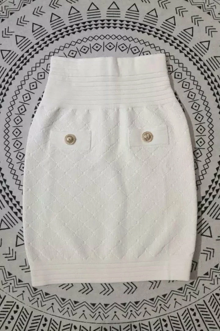 Jessica Bara Michael Gold Button Knit Mini Skirt Reve Doll Essentials