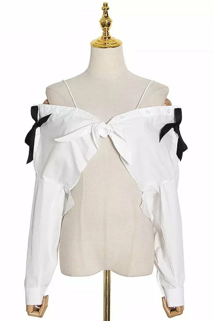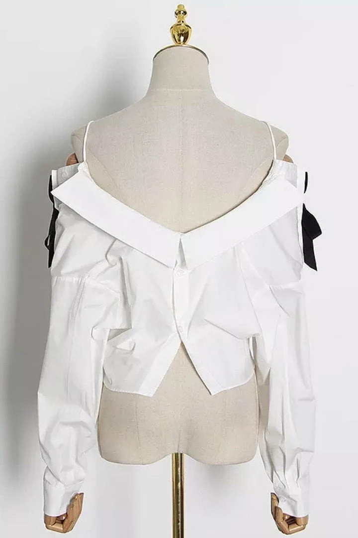 Add a cute touch to your weekend look with our ‘Mina’ top. Featuring a cropped length, off the shoulder style, bowknot details, and long sleeves. Pair with jeans and pumps for a cute look.