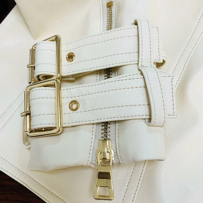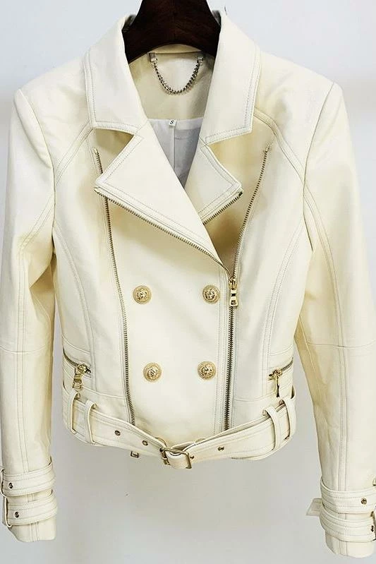 Leather weather is here dolls and this synthetic leather motorcycle jacket is everything we need! Featuring six gold buttons, gold zippers, a detachable belt, and long sleeves. Style this over any top or dress this season to add that extra flare to your look!