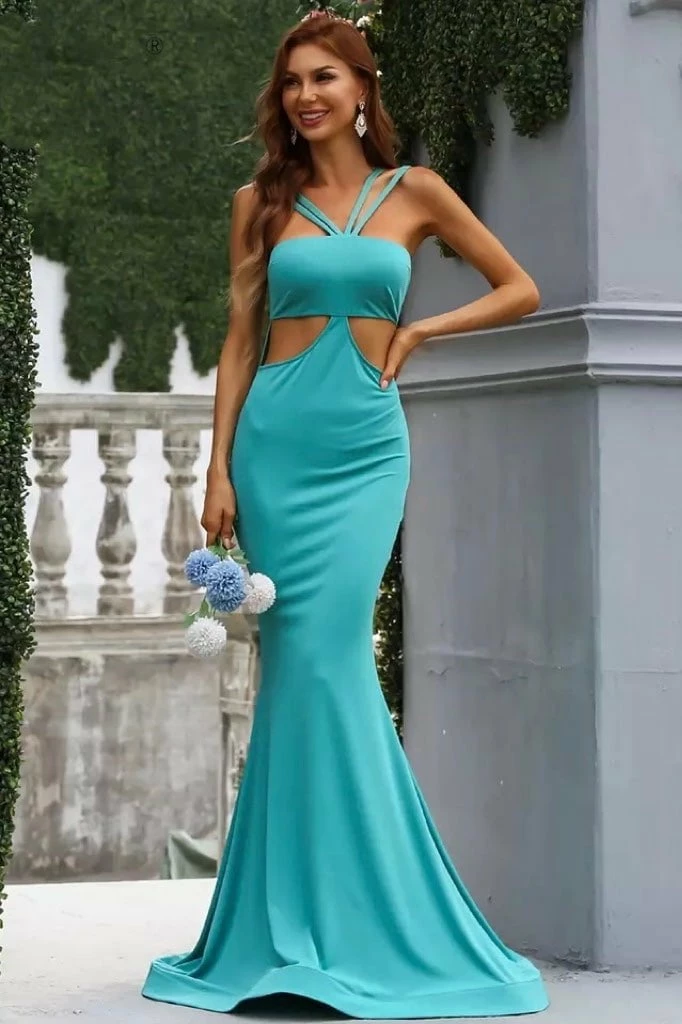 Take on formal season in style! This sleek and elevated gown features a straight neckline, double straps and stunning cut outs. Slip it on for a special event and team it with some strappy heels and fine jewelry.