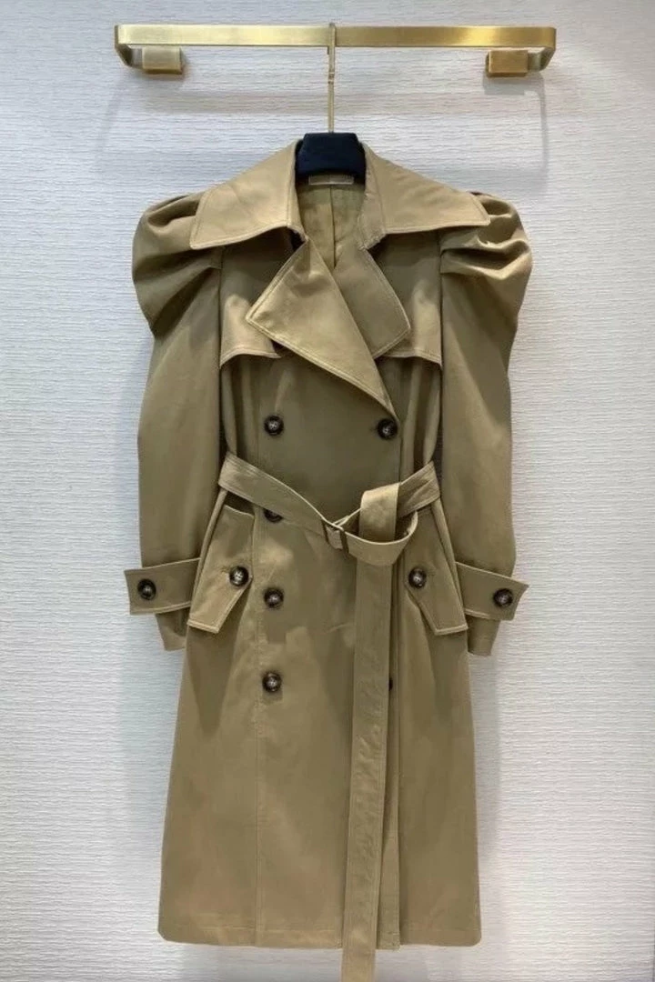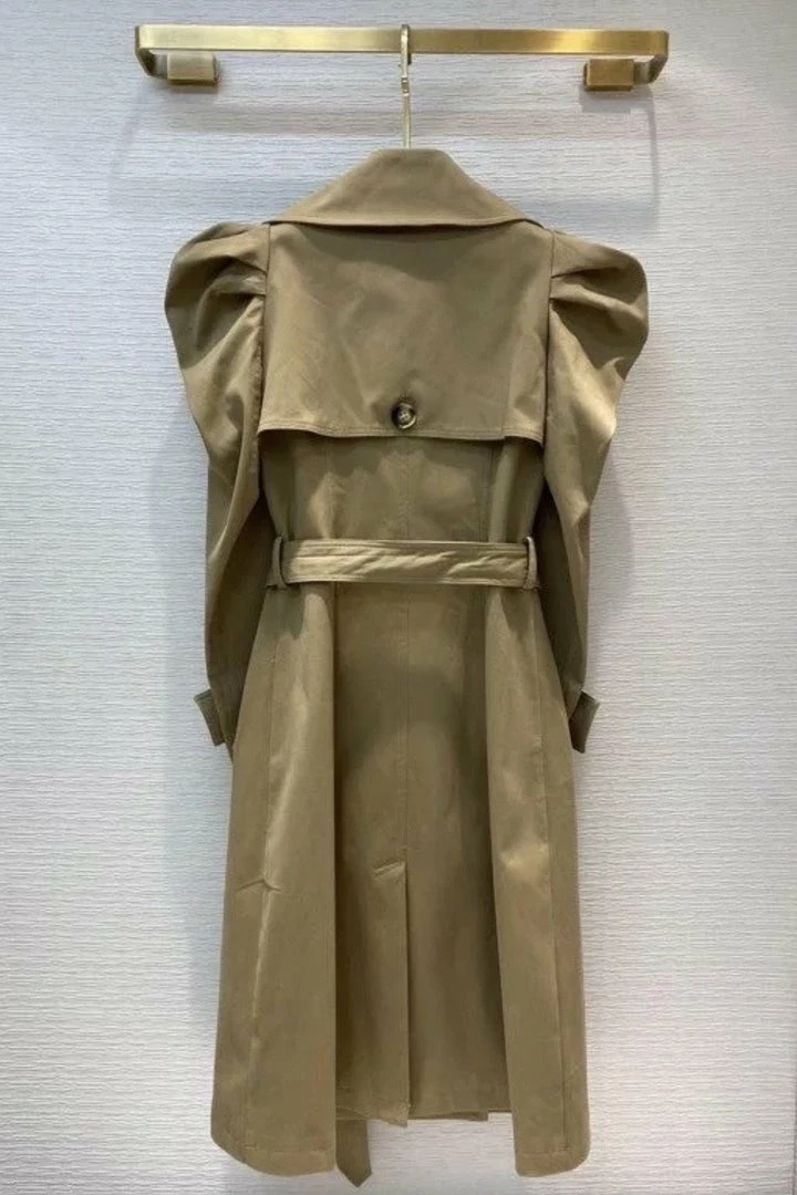 We are obsessing over this coat to add some chic vibes your look. Featuring a khaki material with a puff sleeve style, belted waist, and button detailing. Style this with existing wardrobe pieces to elevate any look!