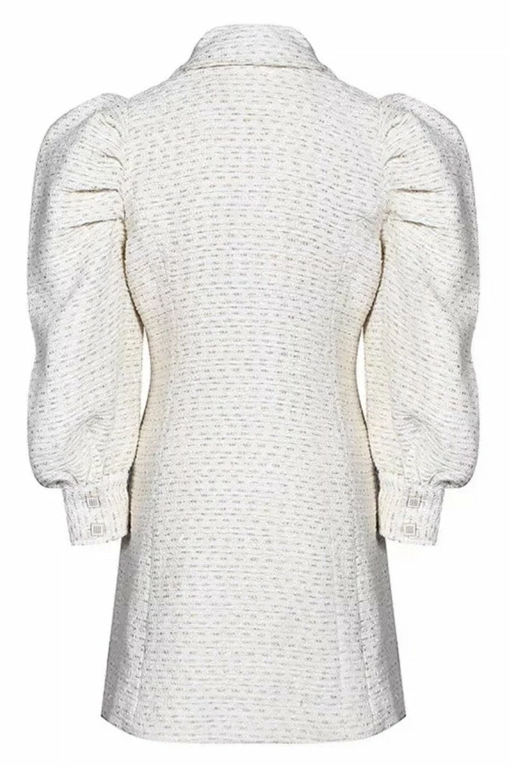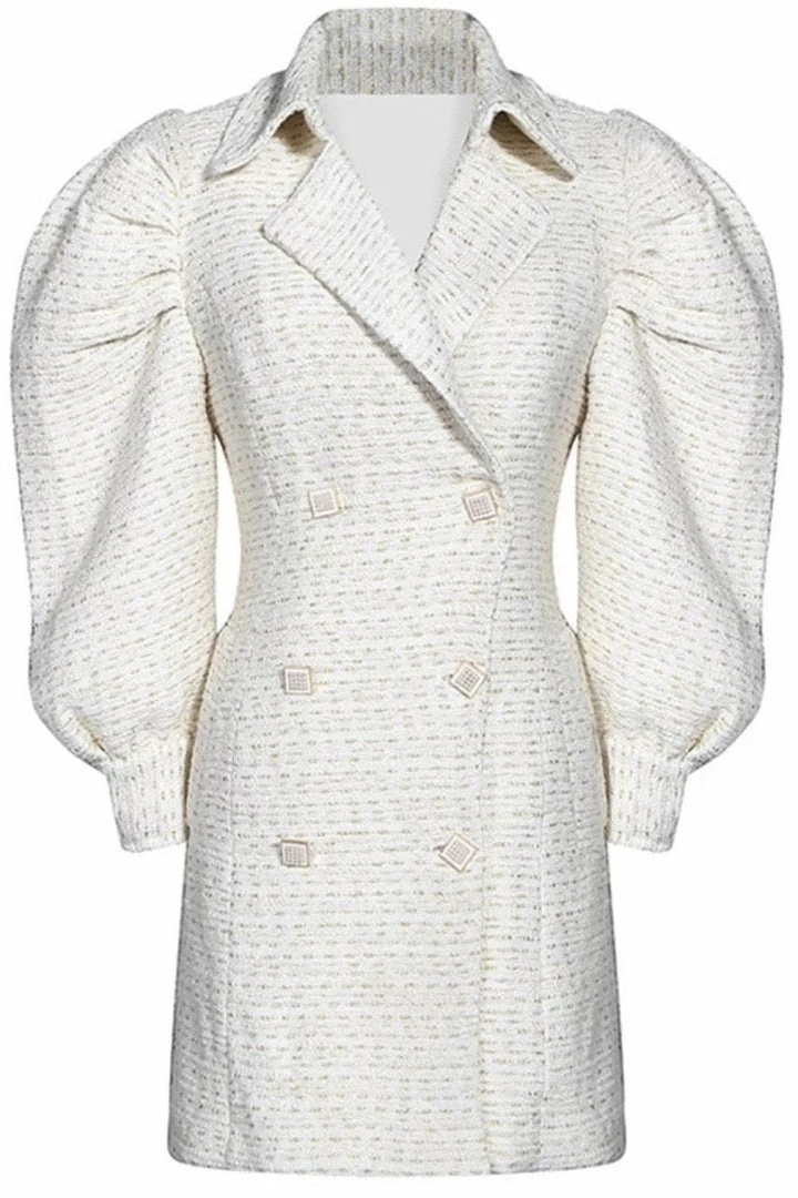 Look like a major boss babe in this stunning blazer dress! Featuring long puff sleeves, double breasted style, tweed material, and a mini length. Pair with nude heels and a sleek ponytail!
